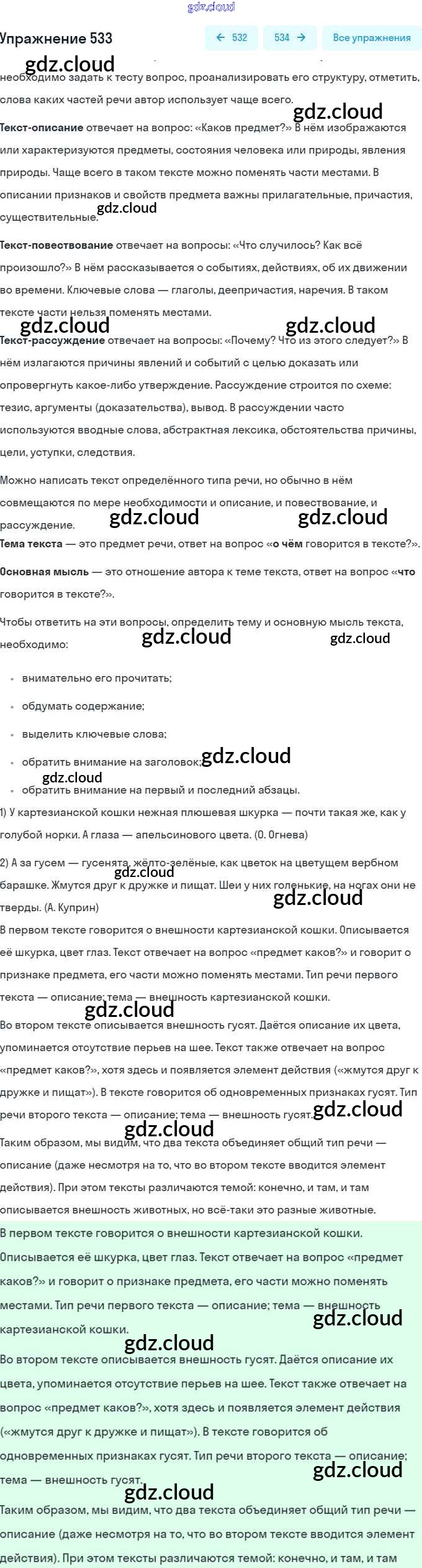 Ответ на задание 533 Учебник Русский язык за 5 (пятый) класс Разумовская, Львова, Капинос, Львов, Богданова, Тронина, Сергеева 2014
