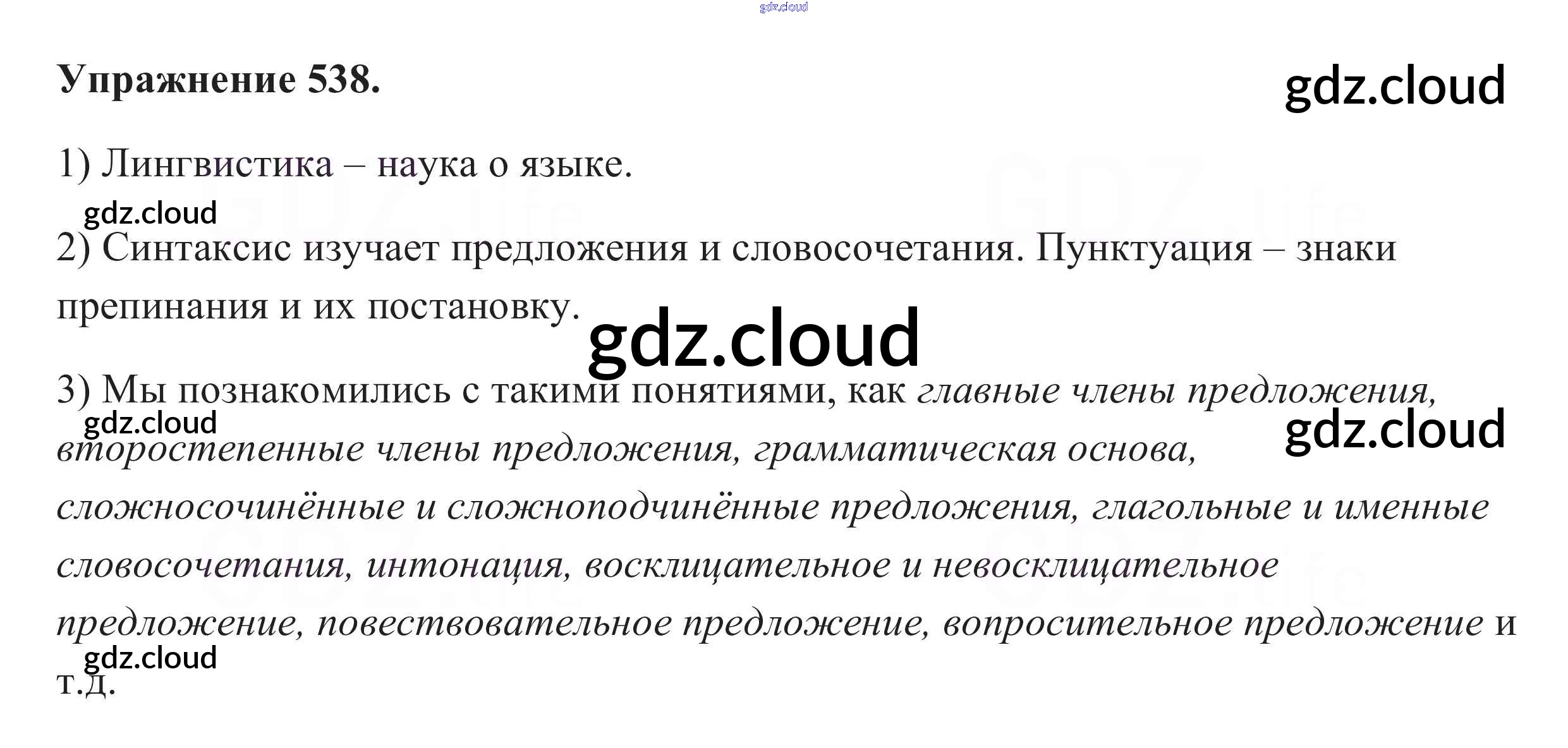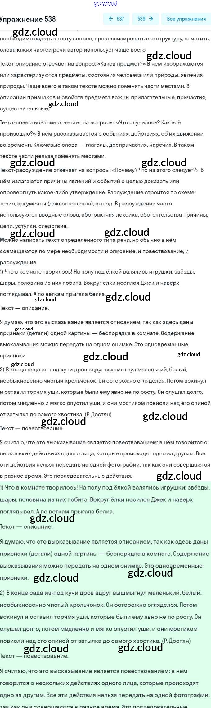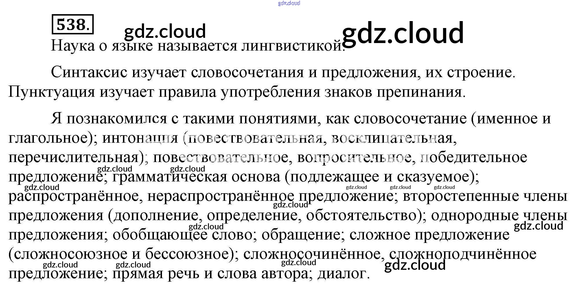 Ответ на задание 538 Учебник Русский язык за 5 (пятый) класс Разумовская, Львова, Капинос, Львов, Богданова, Тронина, Сергеева 2014