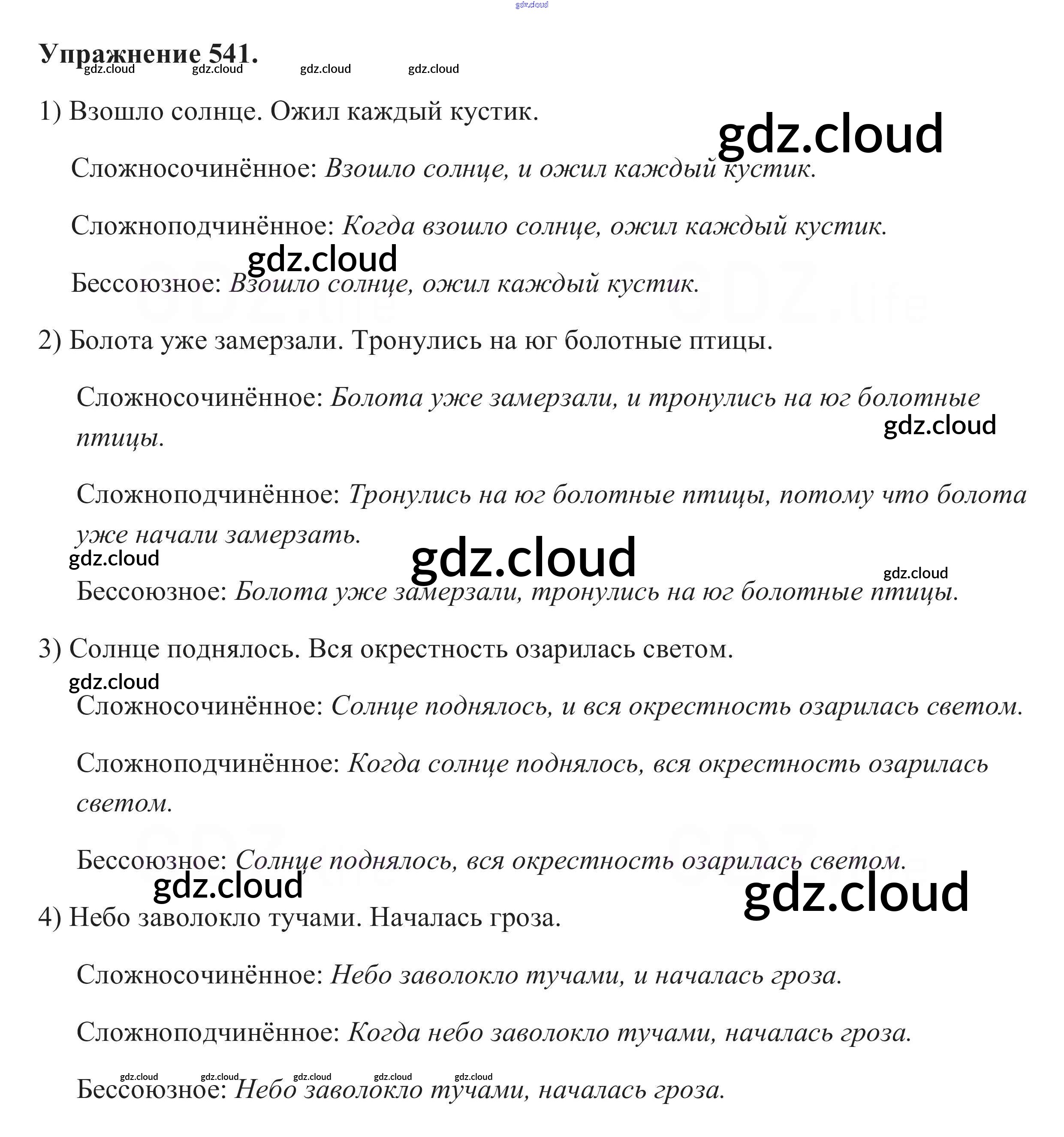 Ответ на задание 541 Учебник Русский язык за 5 (пятый) класс Разумовская, Львова, Капинос, Львов, Богданова, Тронина, Сергеева 2014