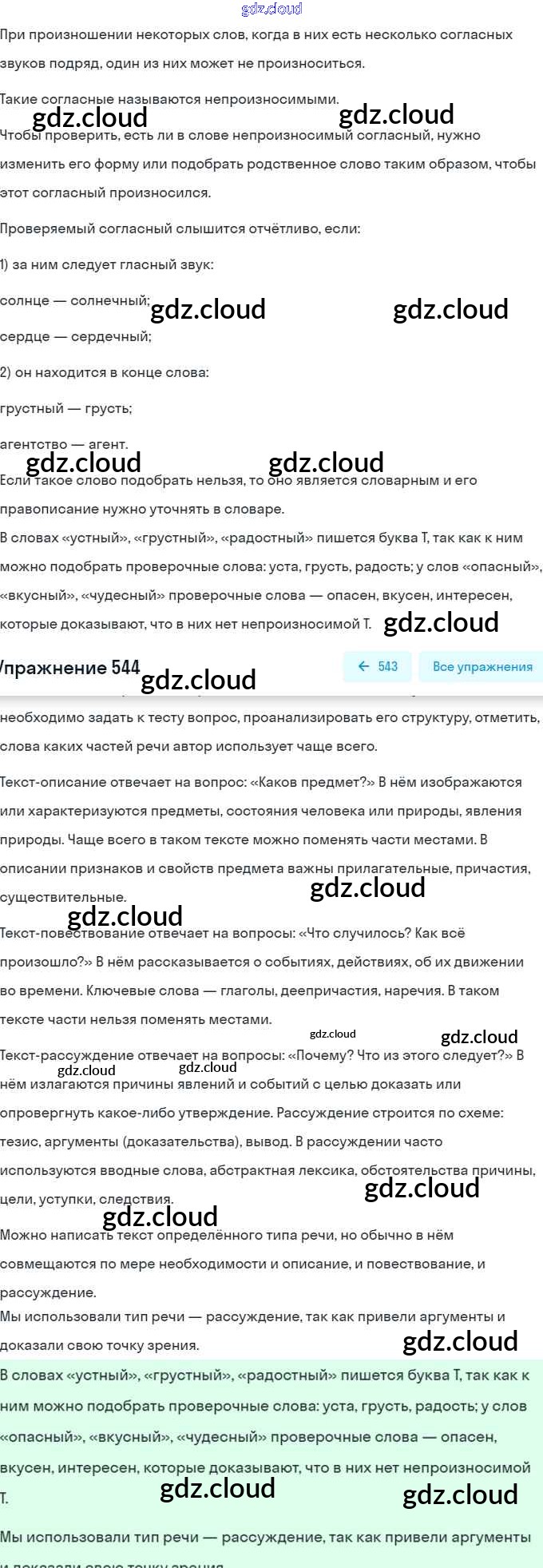 Ответ на задание 544 Учебник Русский язык за 5 (пятый) класс Разумовская, Львова, Капинос, Львов, Богданова, Тронина, Сергеева 2014