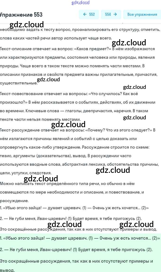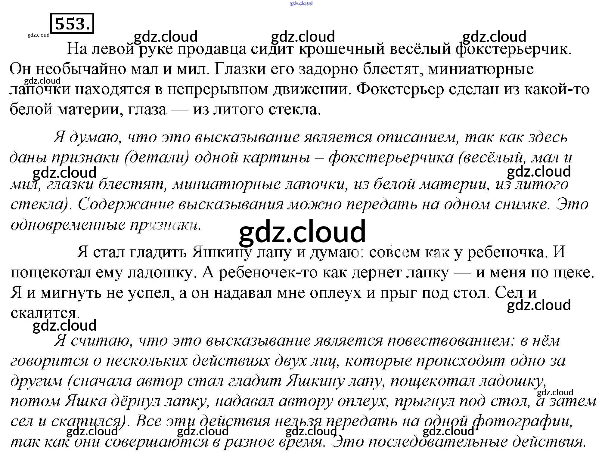 Ответ на задание 553 Учебник Русский язык за 5 (пятый) класс Разумовская, Львова, Капинос, Львов, Богданова, Тронина, Сергеева 2014