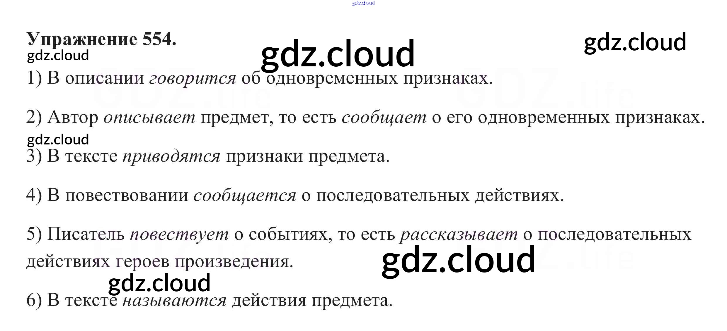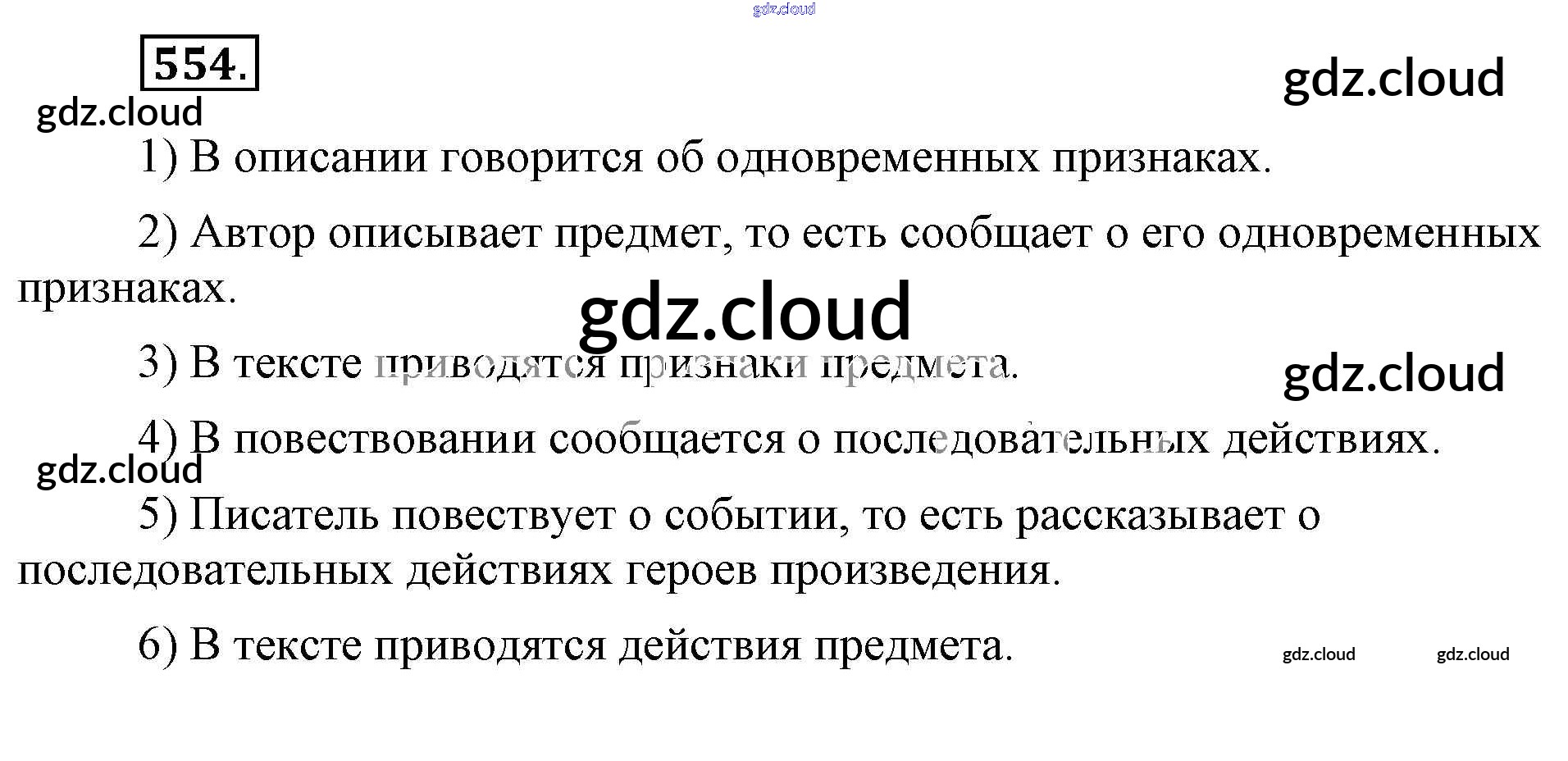 Ответ на задание 554 Учебник Русский язык за 5 (пятый) класс Разумовская, Львова, Капинос, Львов, Богданова, Тронина, Сергеева 2014