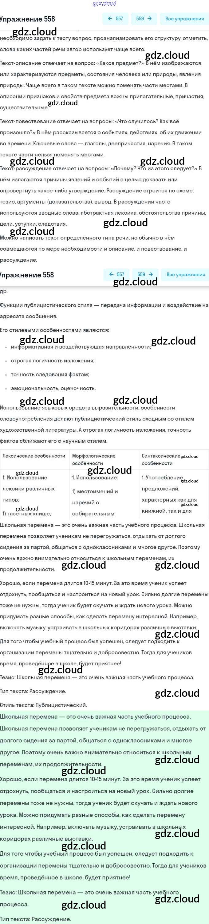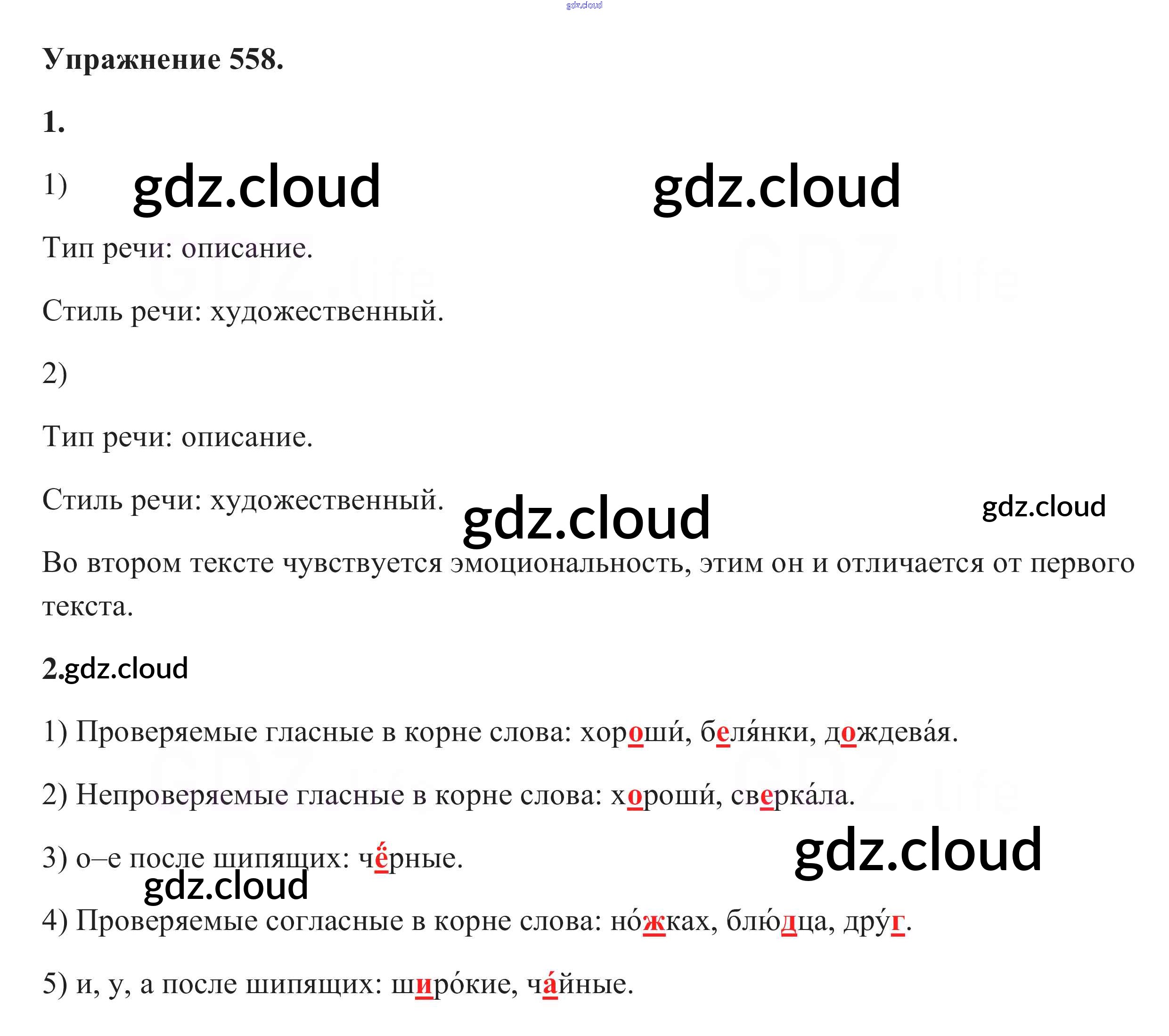 Ответ на задание 558 Учебник Русский язык за 5 (пятый) класс Разумовская, Львова, Капинос, Львов, Богданова, Тронина, Сергеева 2014