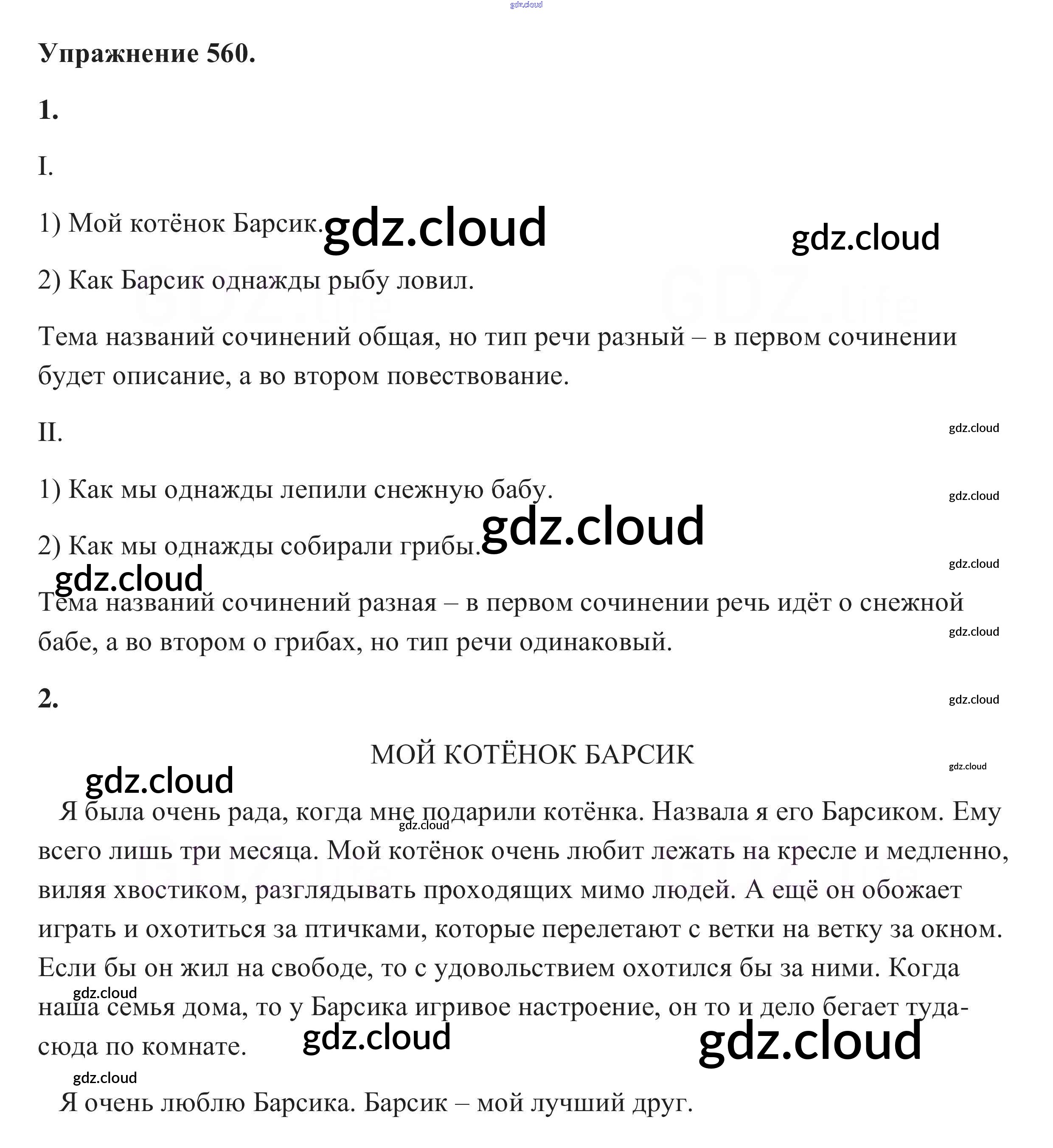 Ответ на задание 560 Учебник Русский язык за 5 (пятый) класс Разумовская, Львова, Капинос, Львов, Богданова, Тронина, Сергеева 2014
