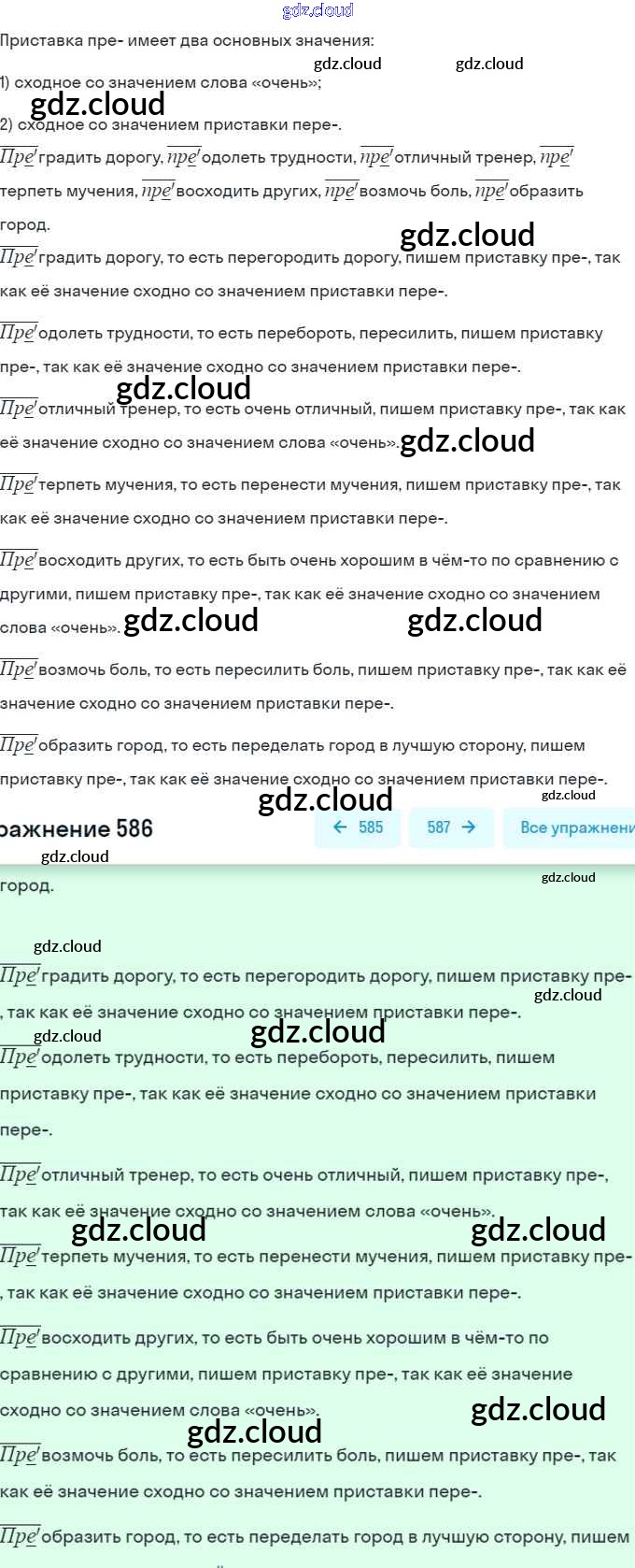 Ответ на задание 586 Учебник Русский язык за 5 (пятый) класс Разумовская, Львова, Капинос, Львов, Богданова, Тронина, Сергеева 2014