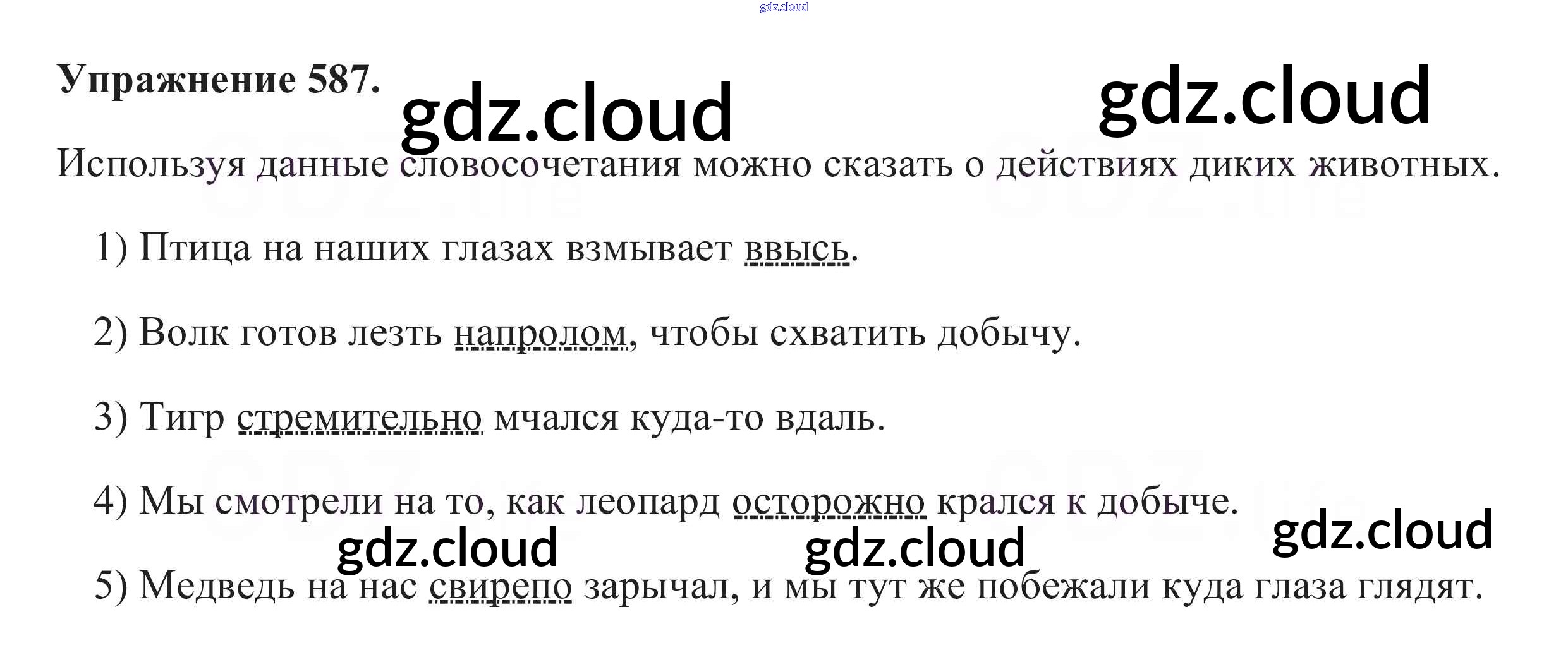 Ответ на задание 587 Учебник Русский язык за 5 (пятый) класс Разумовская, Львова, Капинос, Львов, Богданова, Тронина, Сергеева 2014