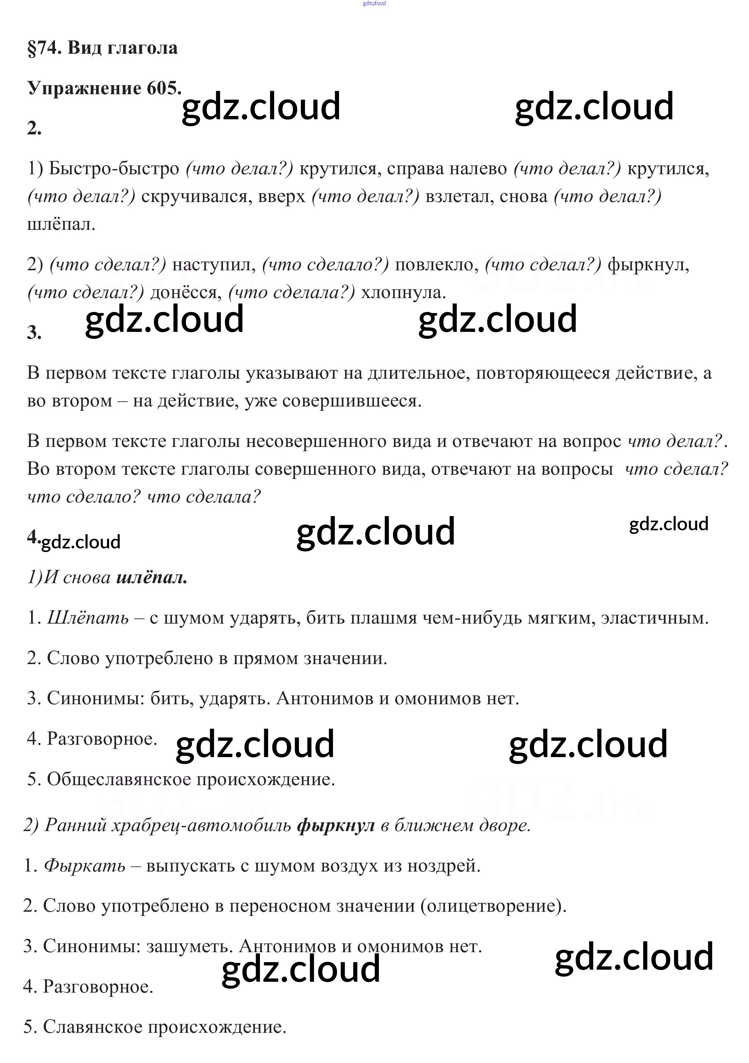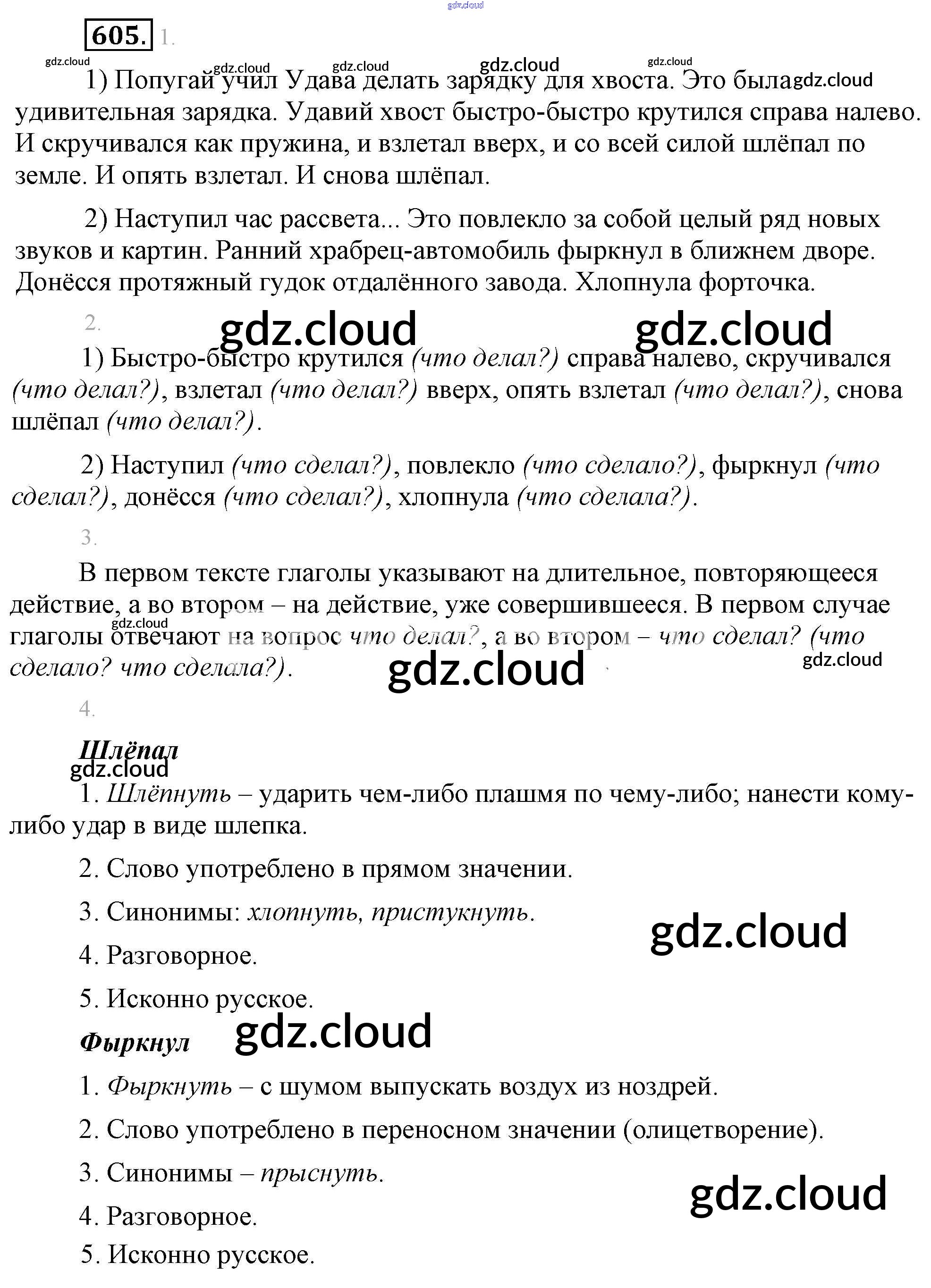 Ответ на задание 605 Учебник Русский язык за 5 (пятый) класс Разумовская, Львова, Капинос, Львов, Богданова, Тронина, Сергеева 2014