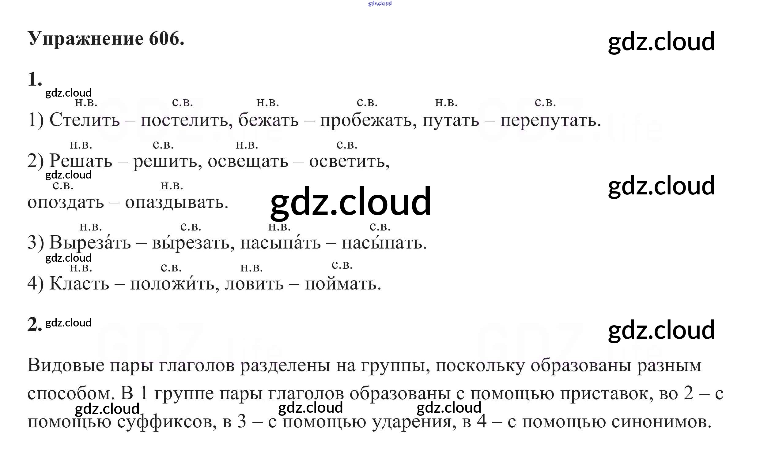 Ответ на задание 606 Учебник Русский язык за 5 (пятый) класс Разумовская, Львова, Капинос, Львов, Богданова, Тронина, Сергеева 2014