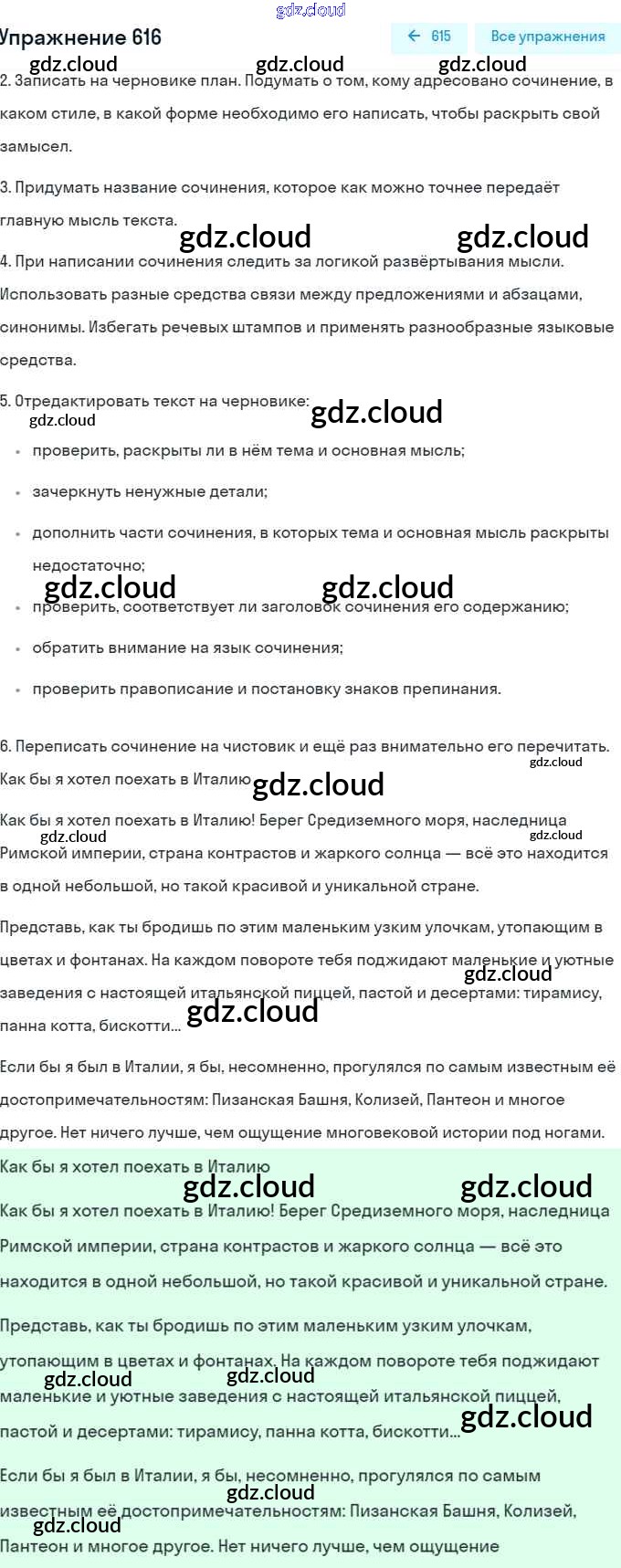 Ответ на задание 616 Учебник Русский язык за 5 (пятый) класс Разумовская, Львова, Капинос, Львов, Богданова, Тронина, Сергеева 2014