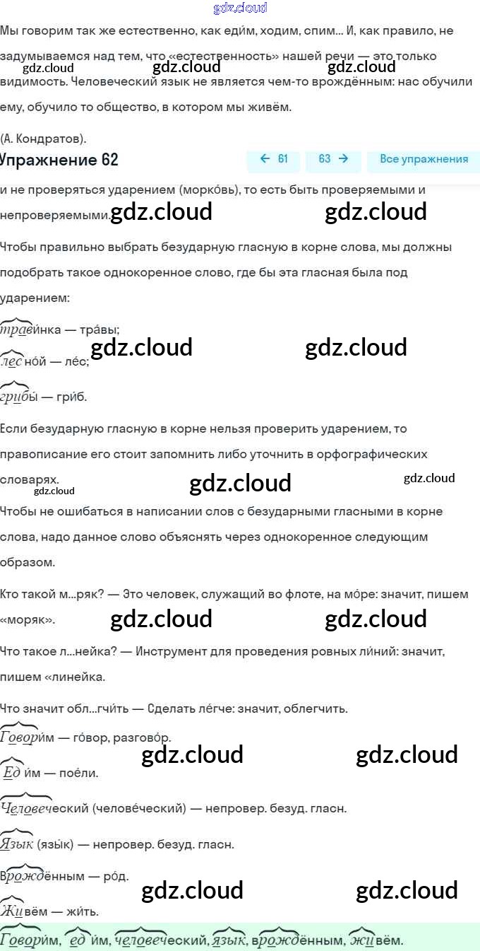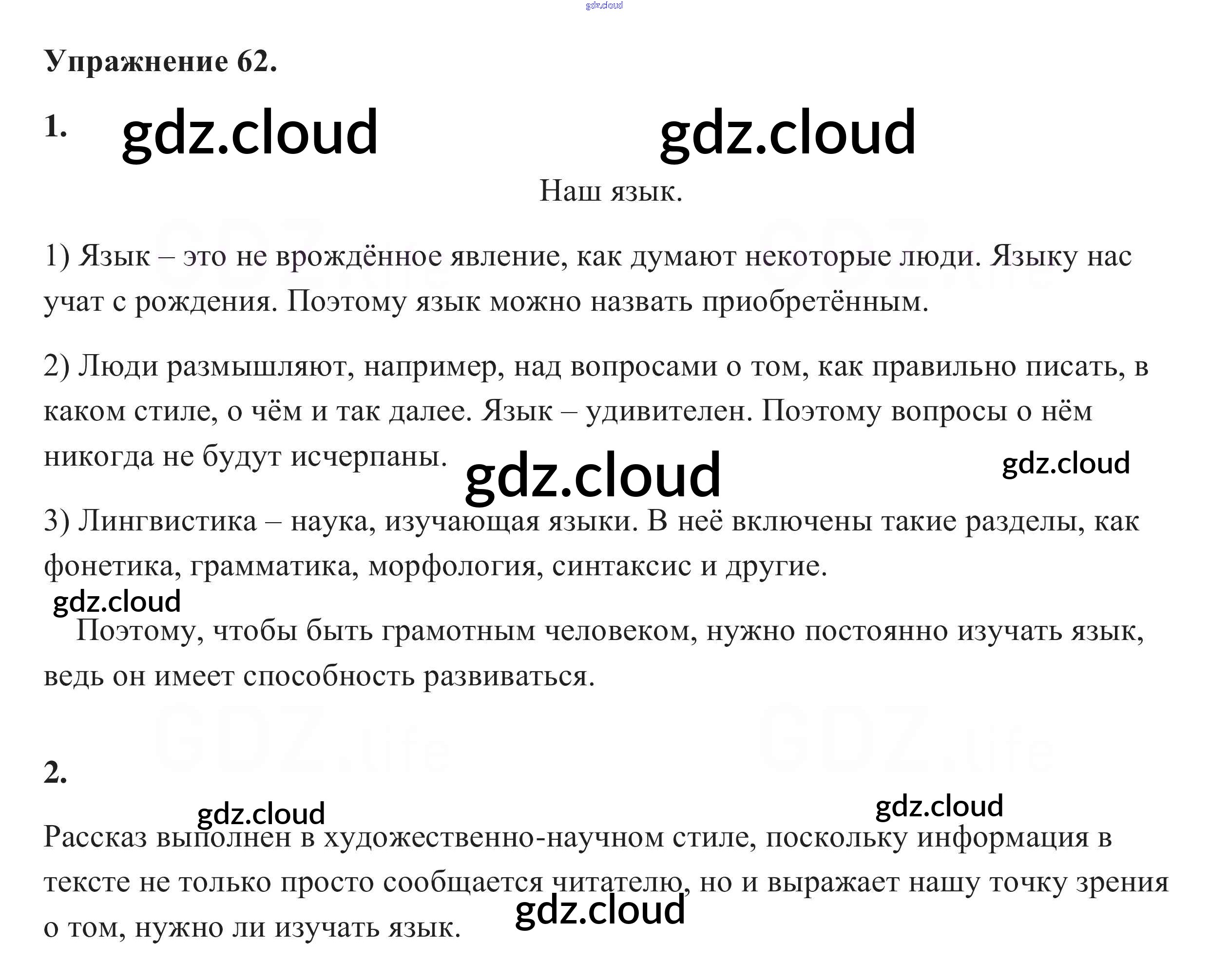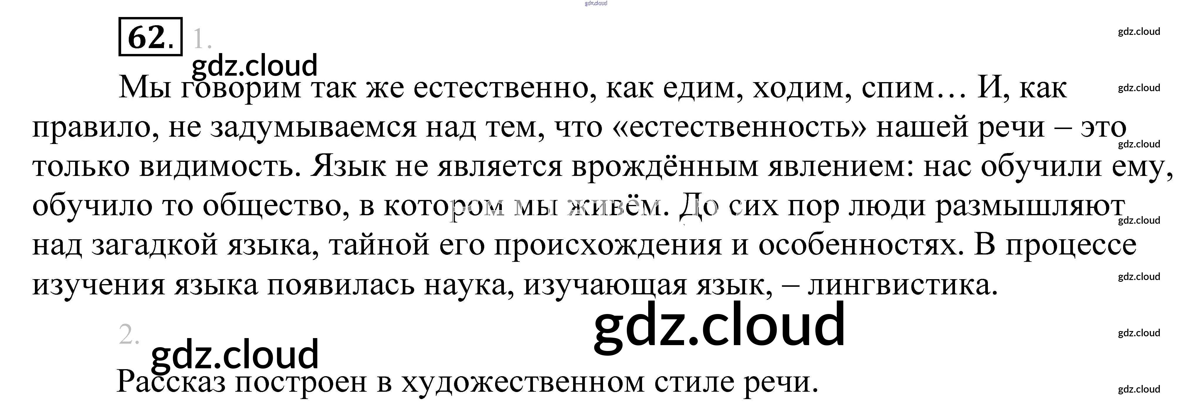 Ответ на задание 62 Учебник Русский язык за 5 (пятый) класс Разумовская, Львова, Капинос, Львов, Богданова, Тронина, Сергеева 2014