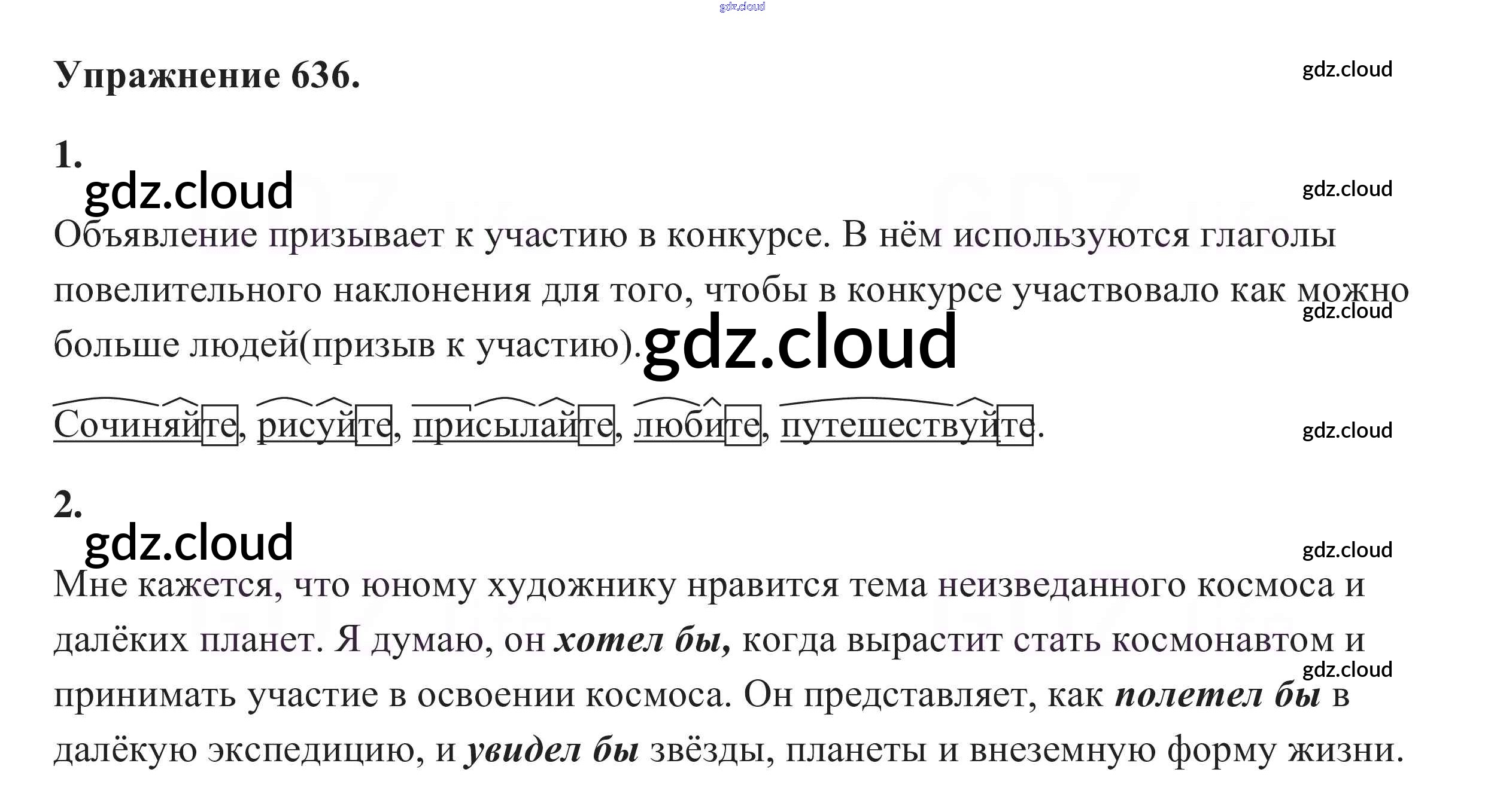 Ответ на задание 636 Учебник Русский язык за 5 (пятый) класс Разумовская, Львова, Капинос, Львов, Богданова, Тронина, Сергеева 2014