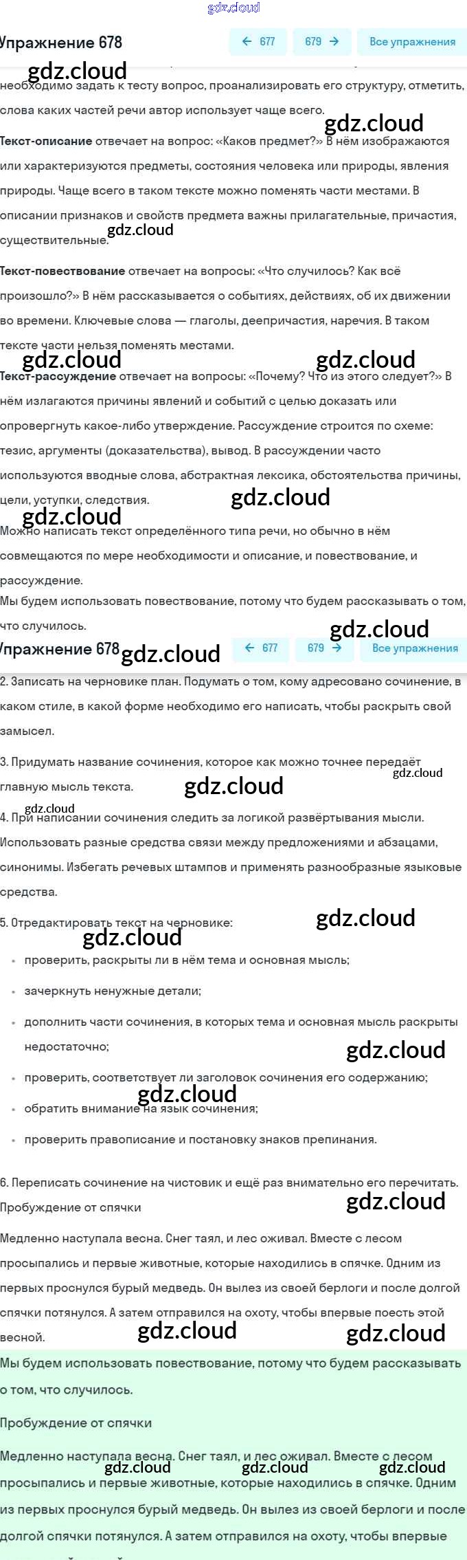 Ответ на задание 678 Учебник Русский язык за 5 (пятый) класс Разумовская, Львова, Капинос, Львов, Богданова, Тронина, Сергеева 2014