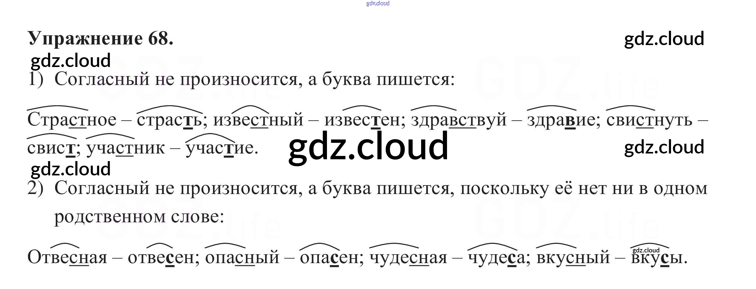 Ответ на задание 68 Учебник Русский язык за 5 (пятый) класс Разумовская, Львова, Капинос, Львов, Богданова, Тронина, Сергеева 2014