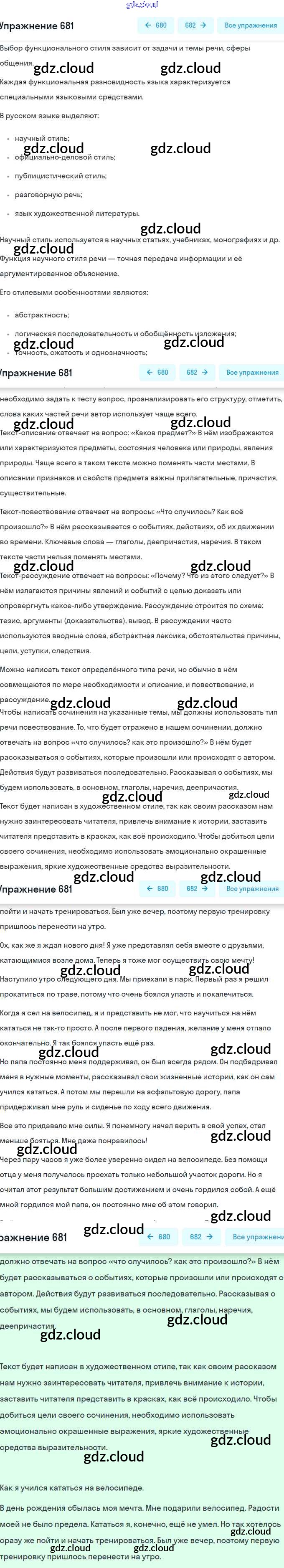 Ответ на задание 681 Учебник Русский язык за 5 (пятый) класс Разумовская, Львова, Капинос, Львов, Богданова, Тронина, Сергеева 2014