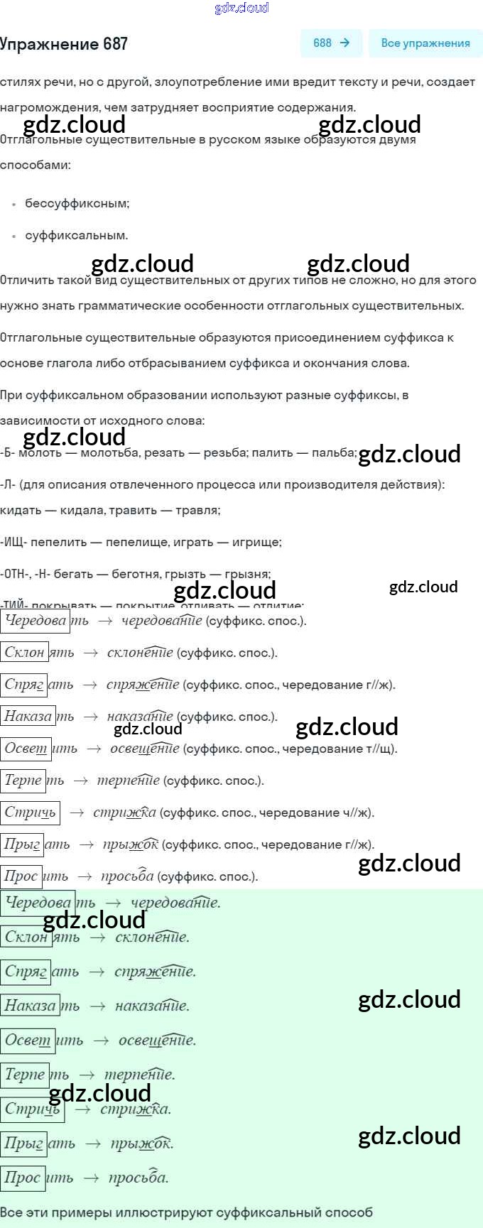Ответ на задание 687 Учебник Русский язык за 5 (пятый) класс Разумовская, Львова, Капинос, Львов, Богданова, Тронина, Сергеева 2014