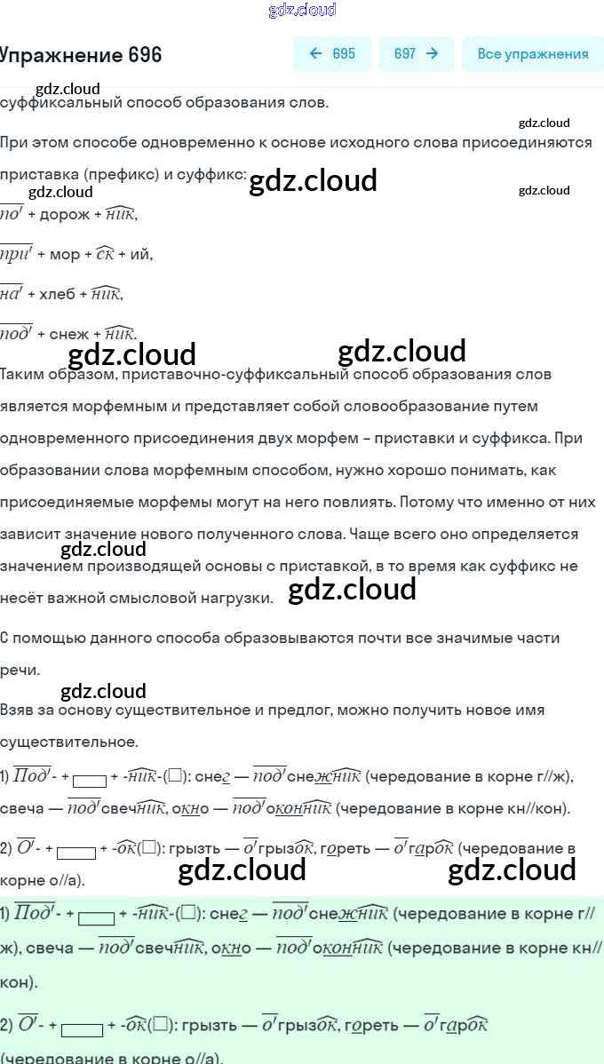 Ответ на задание 696 Учебник Русский язык за 5 (пятый) класс Разумовская, Львова, Капинос, Львов, Богданова, Тронина, Сергеева 2014