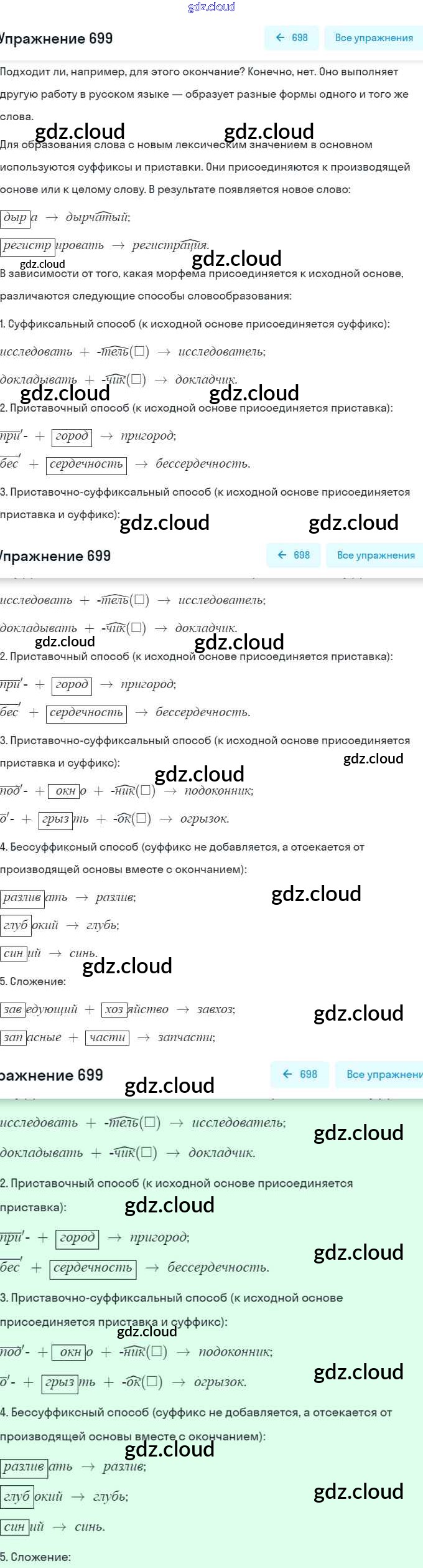 Ответ на задание 699 Учебник Русский язык за 5 (пятый) класс Разумовская, Львова, Капинос, Львов, Богданова, Тронина, Сергеева 2014