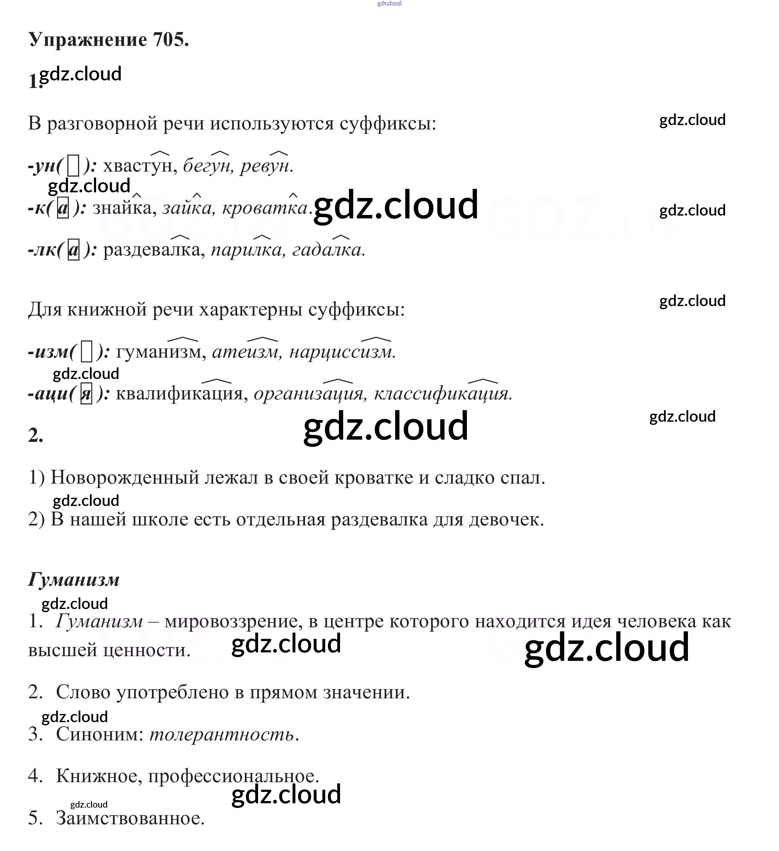 Ответ на задание 705 Учебник Русский язык за 5 (пятый) класс Разумовская, Львова, Капинос, Львов, Богданова, Тронина, Сергеева 2014