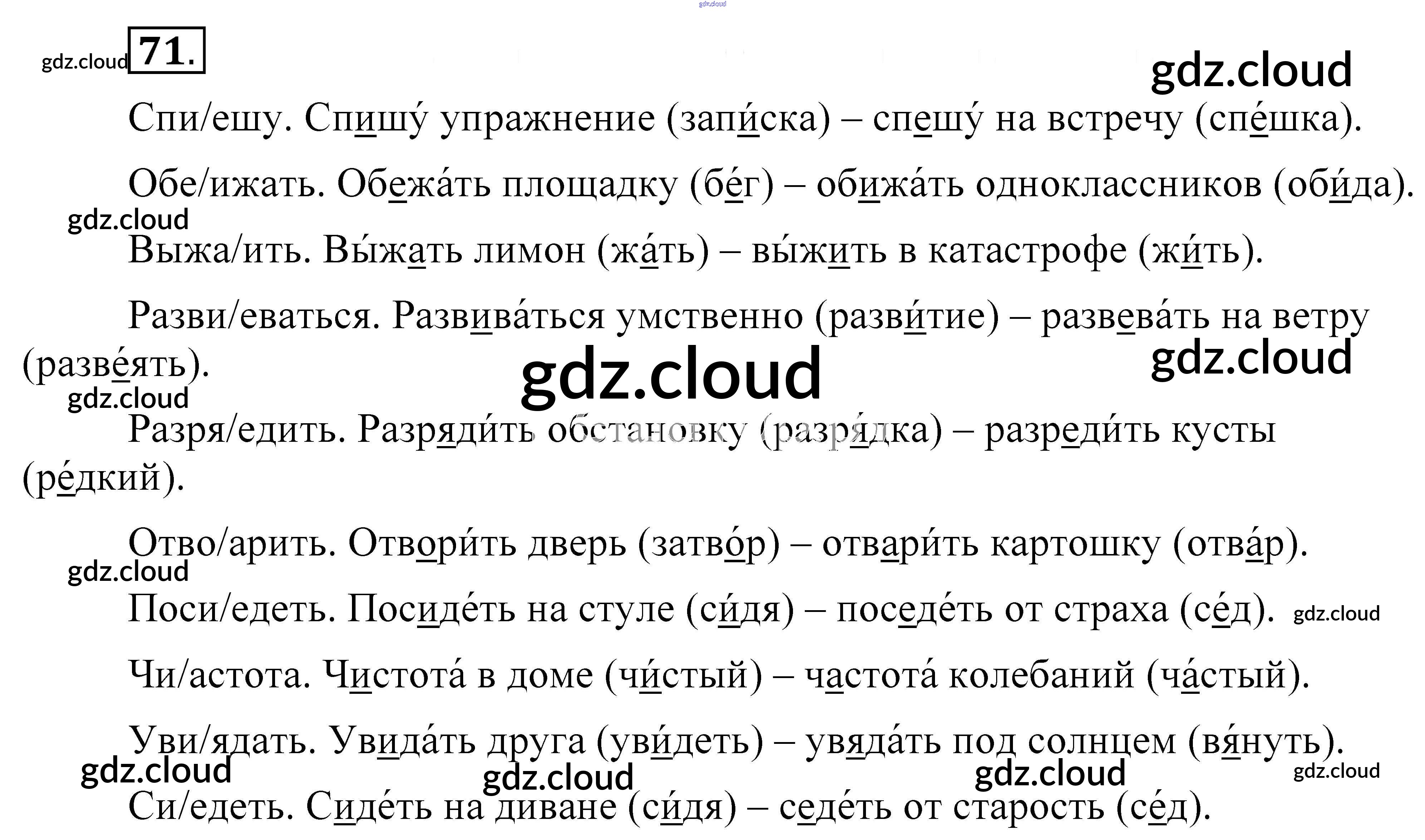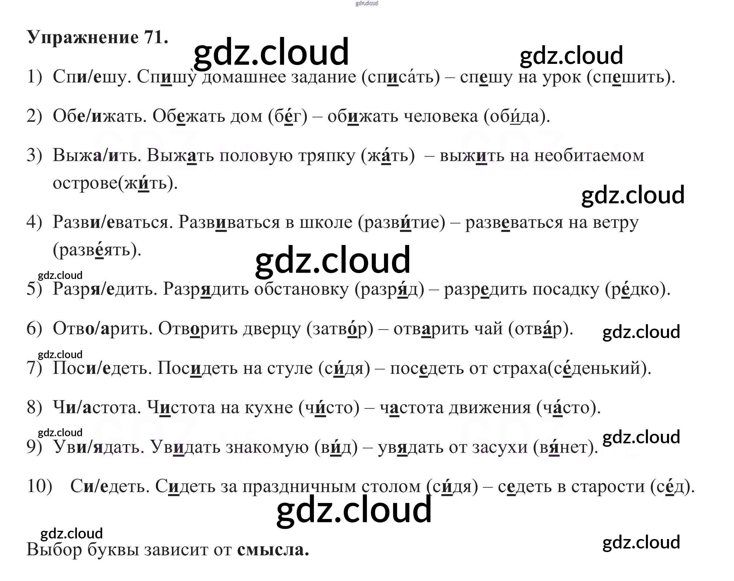 Ответ на задание 71 Учебник Русский язык за 5 (пятый) класс Разумовская, Львова, Капинос, Львов, Богданова, Тронина, Сергеева 2014
