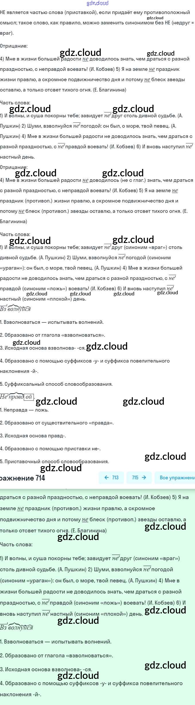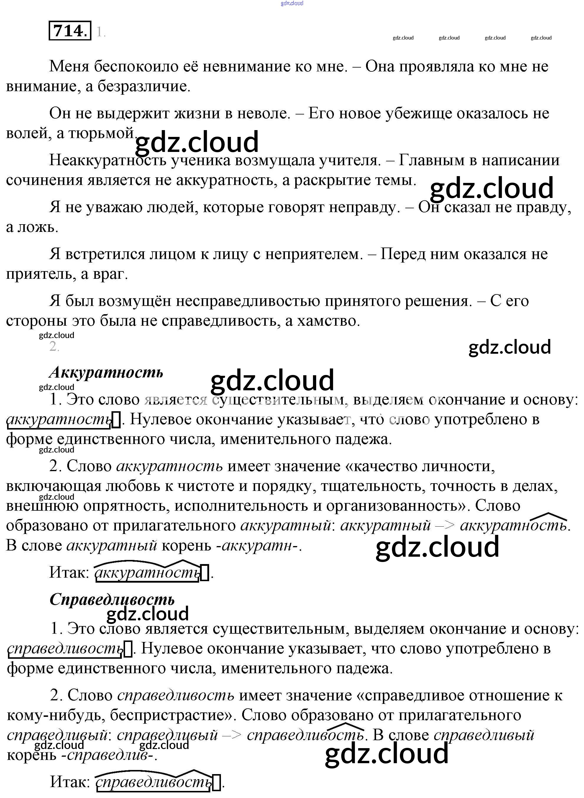 Ответ на задание 714 Учебник Русский язык за 5 (пятый) класс Разумовская, Львова, Капинос, Львов, Богданова, Тронина, Сергеева 2014