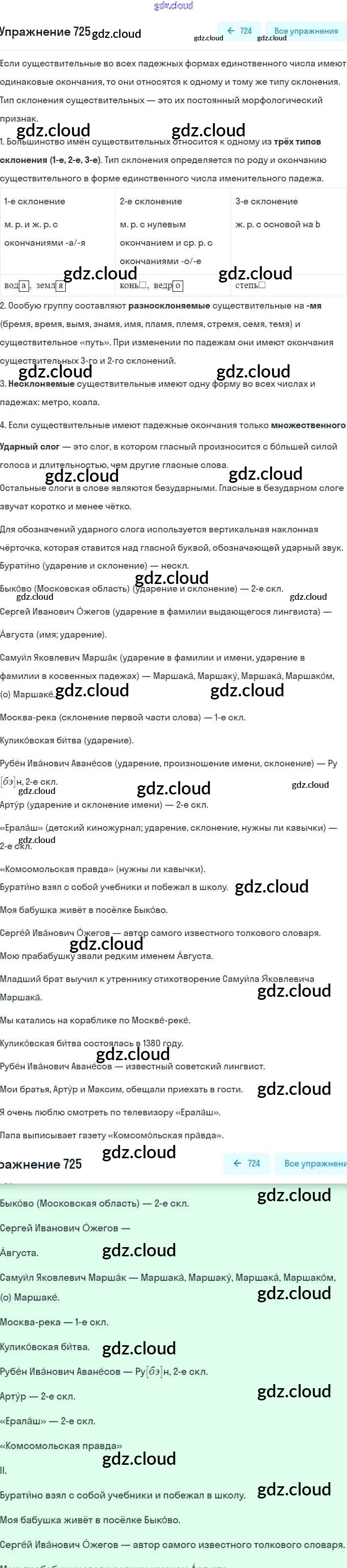 Ответ на задание 725 Учебник Русский язык за 5 (пятый) класс Разумовская, Львова, Капинос, Львов, Богданова, Тронина, Сергеева 2014