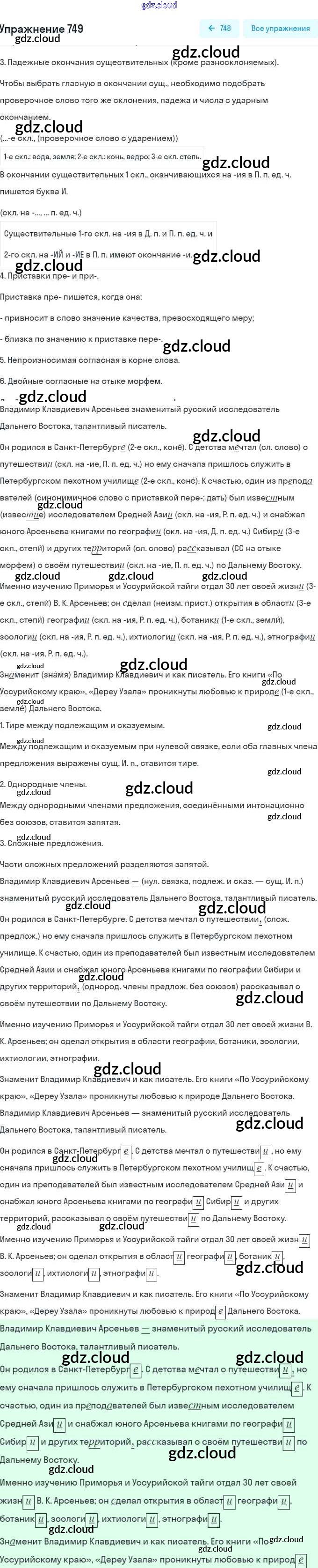 Ответ на задание 749 Учебник Русский язык за 5 (пятый) класс Разумовская, Львова, Капинос, Львов, Богданова, Тронина, Сергеева 2014
