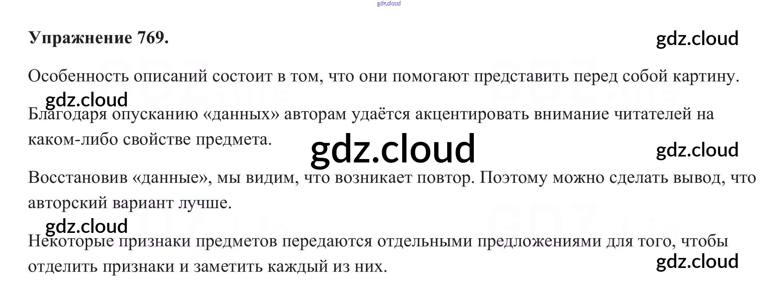 Ответ на задание 769 Учебник Русский язык за 5 (пятый) класс Разумовская, Львова, Капинос, Львов, Богданова, Тронина, Сергеева 2014