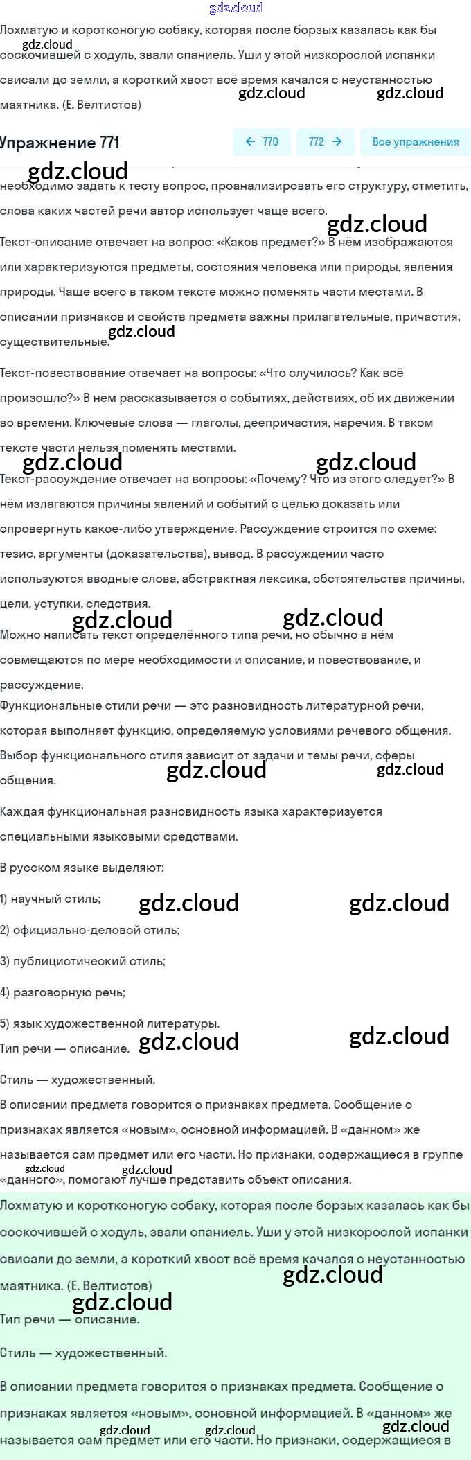 Ответ на задание 771 Учебник Русский язык за 5 (пятый) класс Разумовская, Львова, Капинос, Львов, Богданова, Тронина, Сергеева 2014