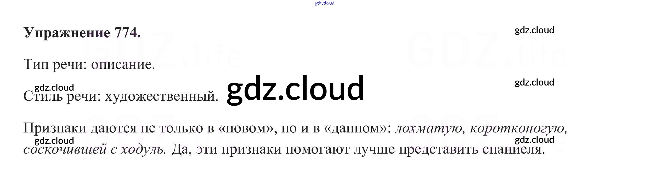 Ответ на задание 774 Учебник Русский язык за 5 (пятый) класс Разумовская, Львова, Капинос, Львов, Богданова, Тронина, Сергеева 2014