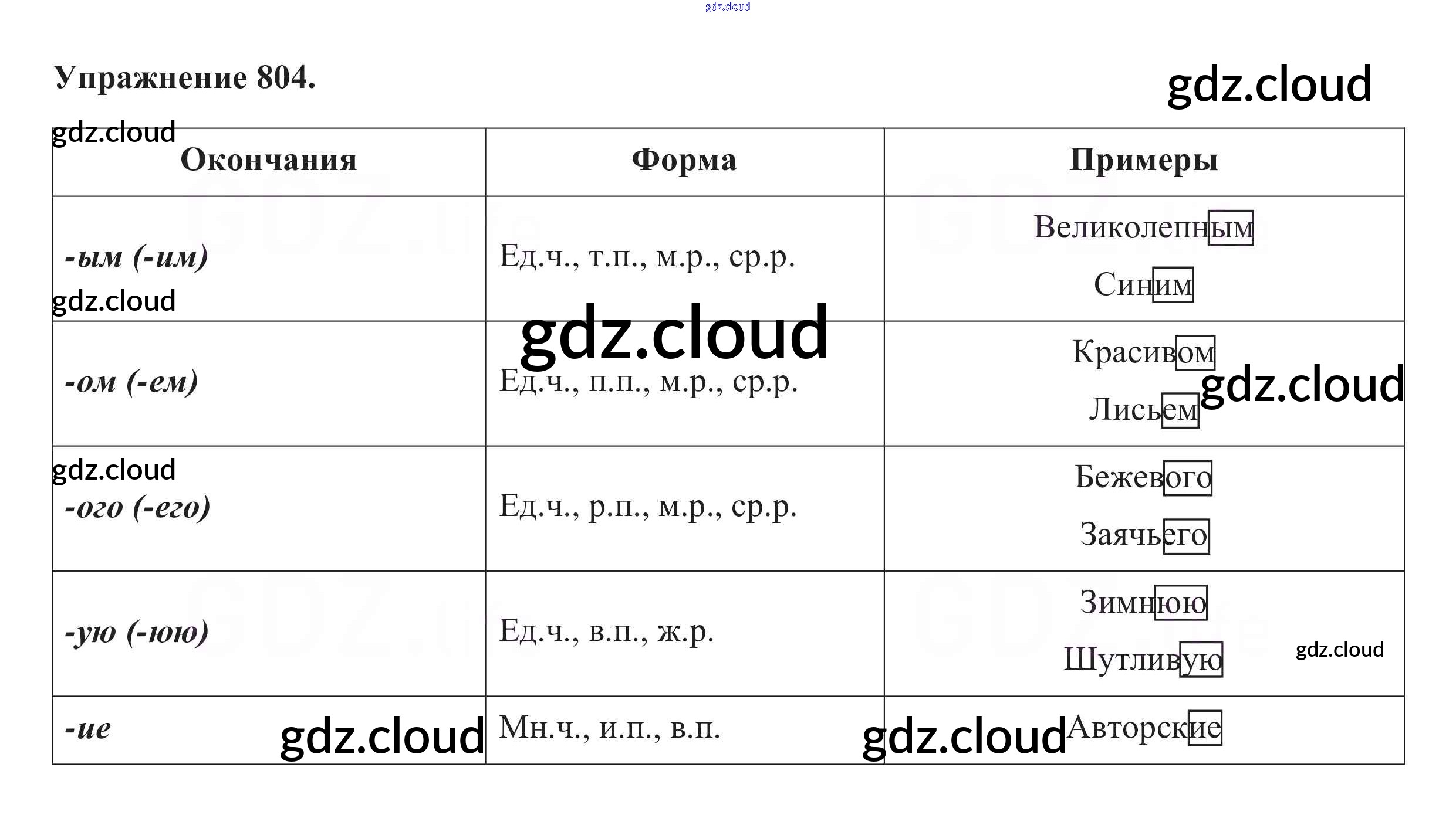 Ответ на задание 804 Учебник Русский язык за 5 (пятый) класс Разумовская, Львова, Капинос, Львов, Богданова, Тронина, Сергеева 2014