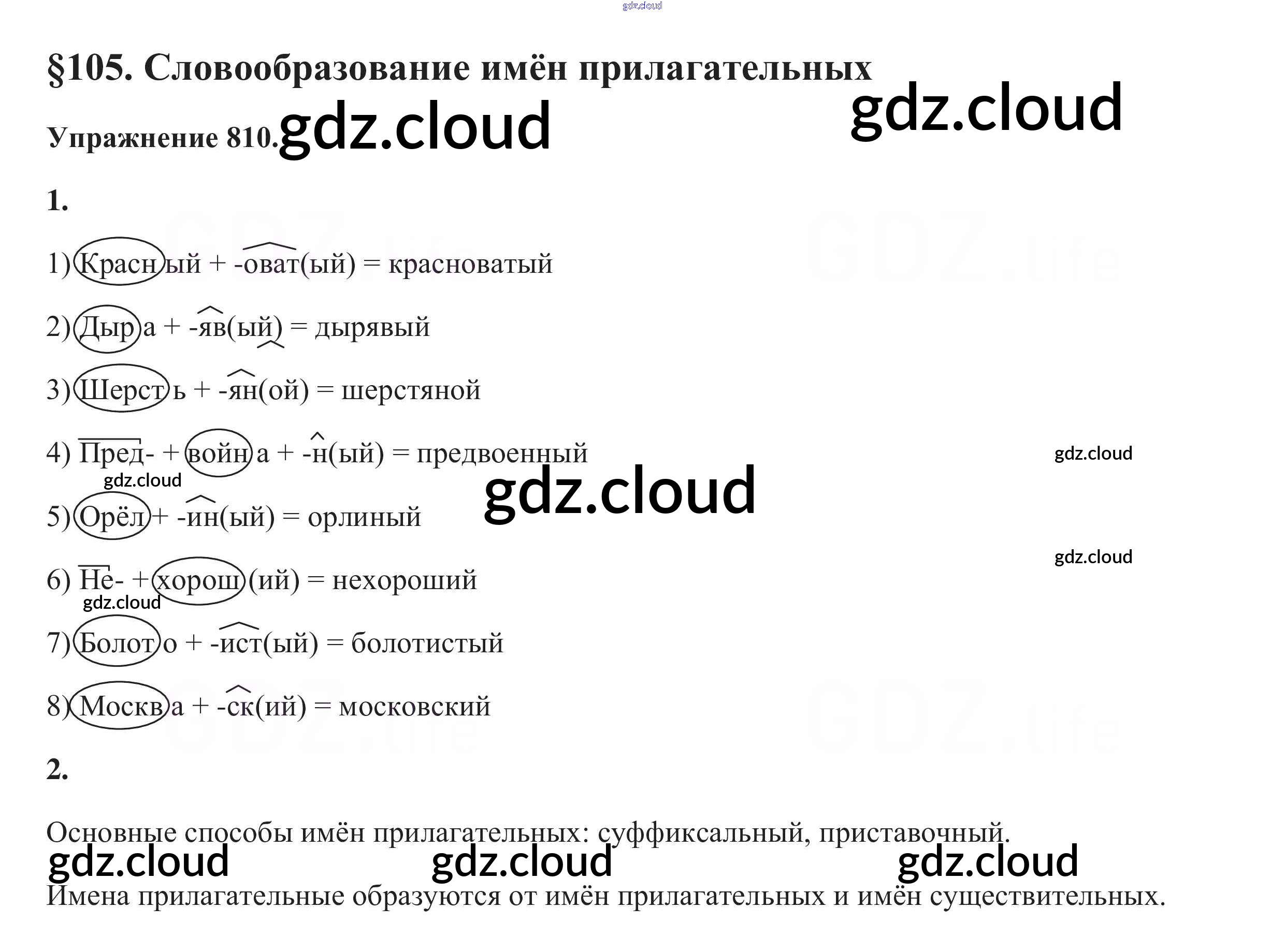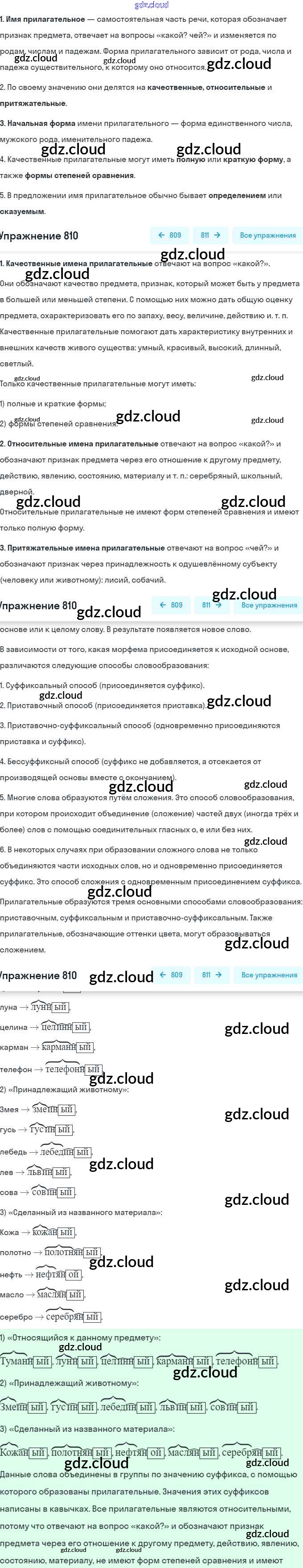Ответ на задание 810 Учебник Русский язык за 5 (пятый) класс Разумовская, Львова, Капинос, Львов, Богданова, Тронина, Сергеева 2014