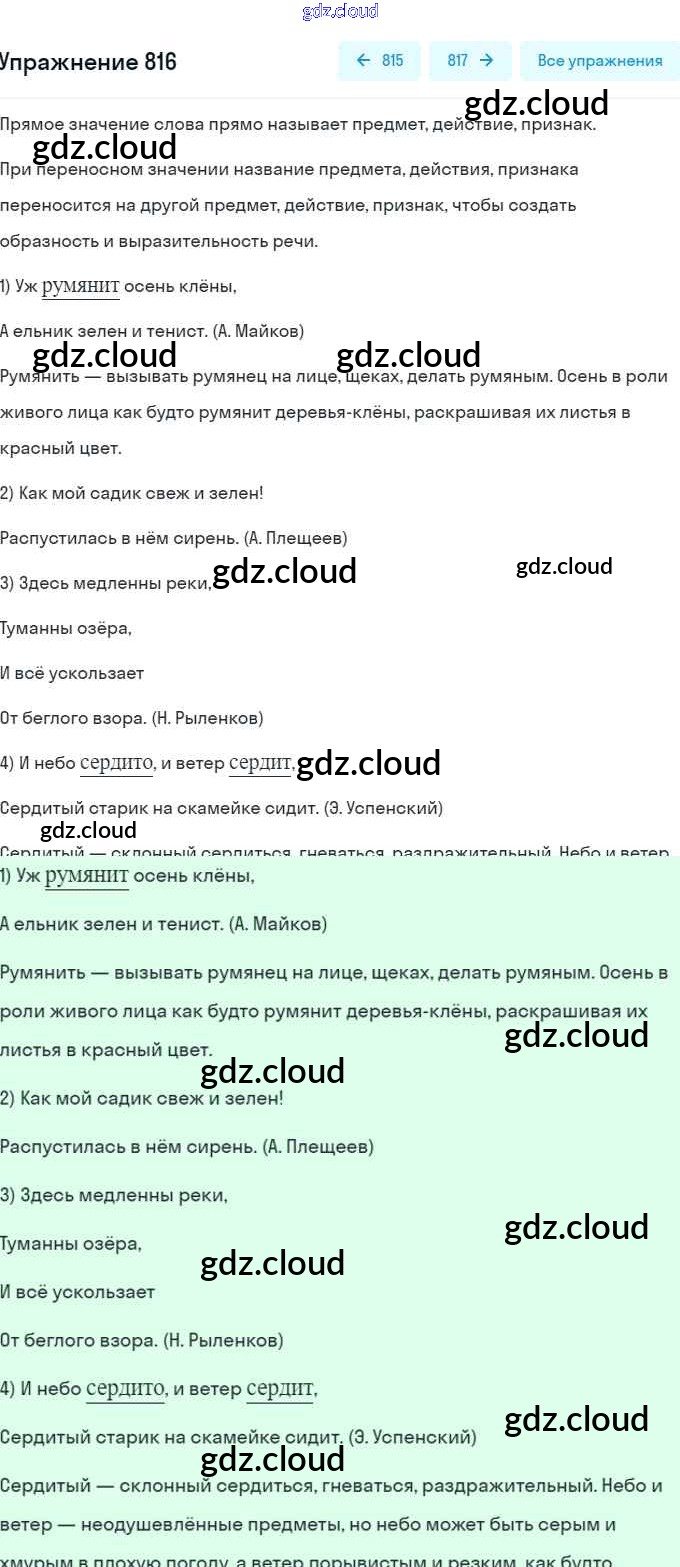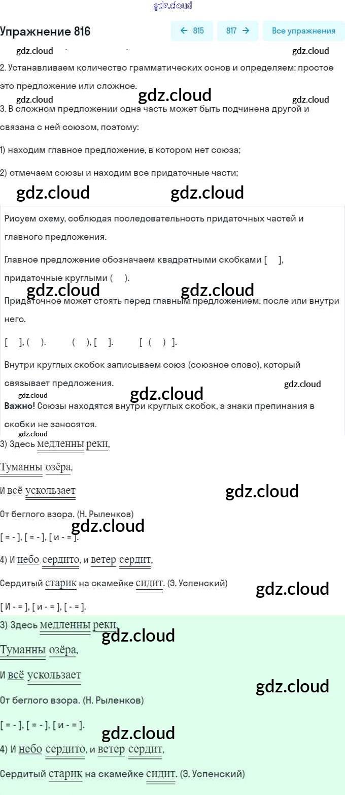 Ответ на задание 816 Учебник Русский язык за 5 (пятый) класс Разумовская, Львова, Капинос, Львов, Богданова, Тронина, Сергеева 2014