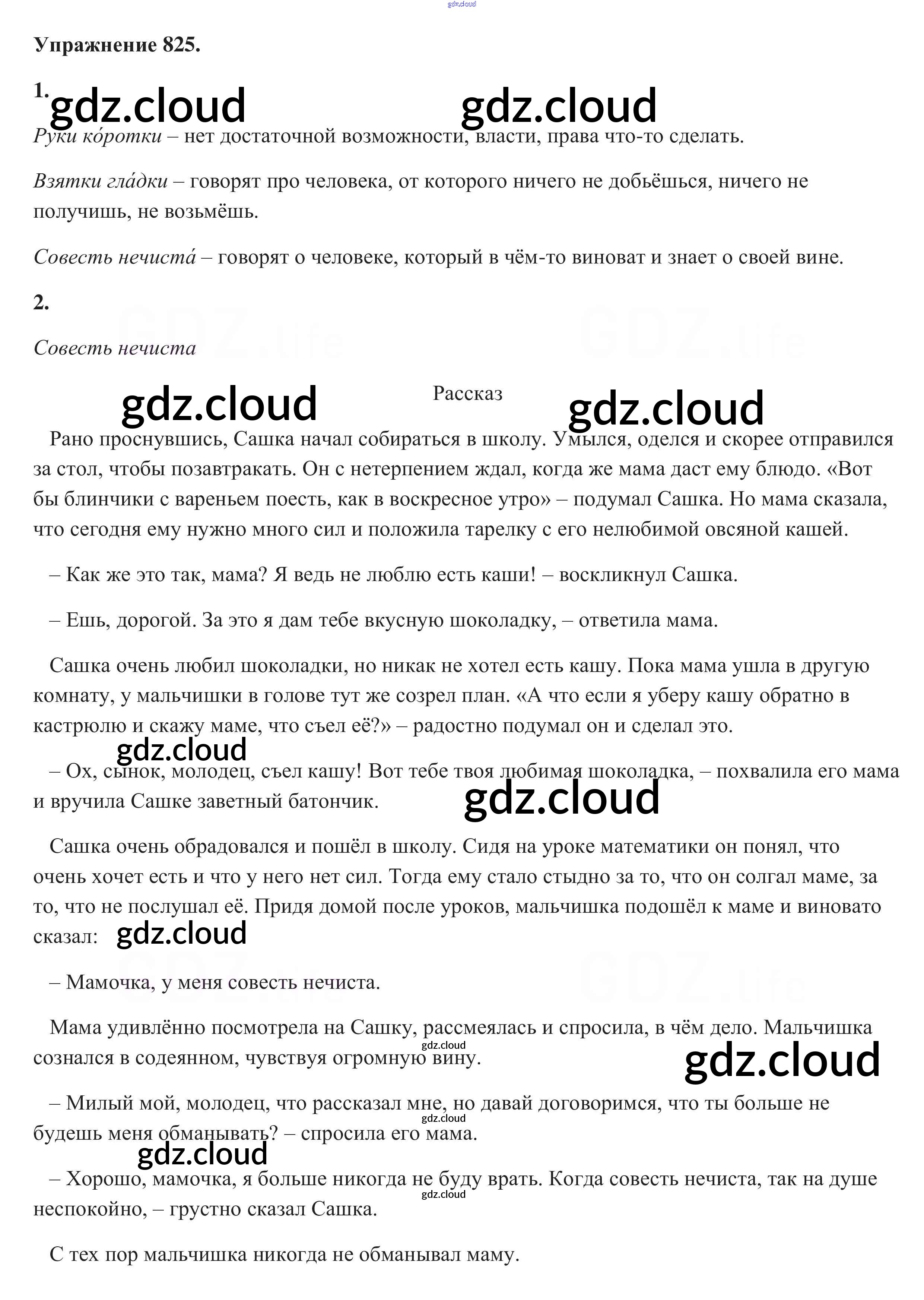 Ответ на задание 825 Учебник Русский язык за 5 (пятый) класс Разумовская, Львова, Капинос, Львов, Богданова, Тронина, Сергеева 2014