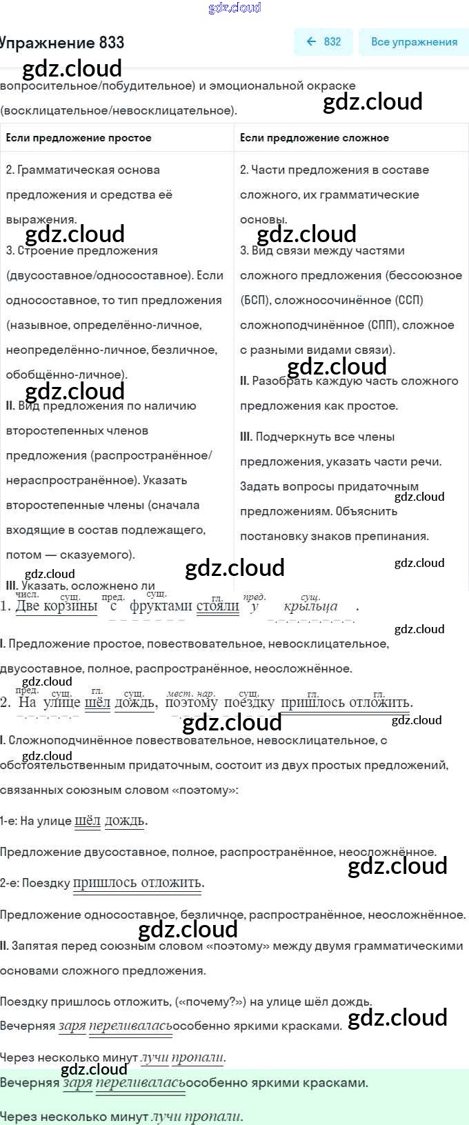Ответ на задание 833 Учебник Русский язык за 5 (пятый) класс Разумовская, Львова, Капинос, Львов, Богданова, Тронина, Сергеева 2014
