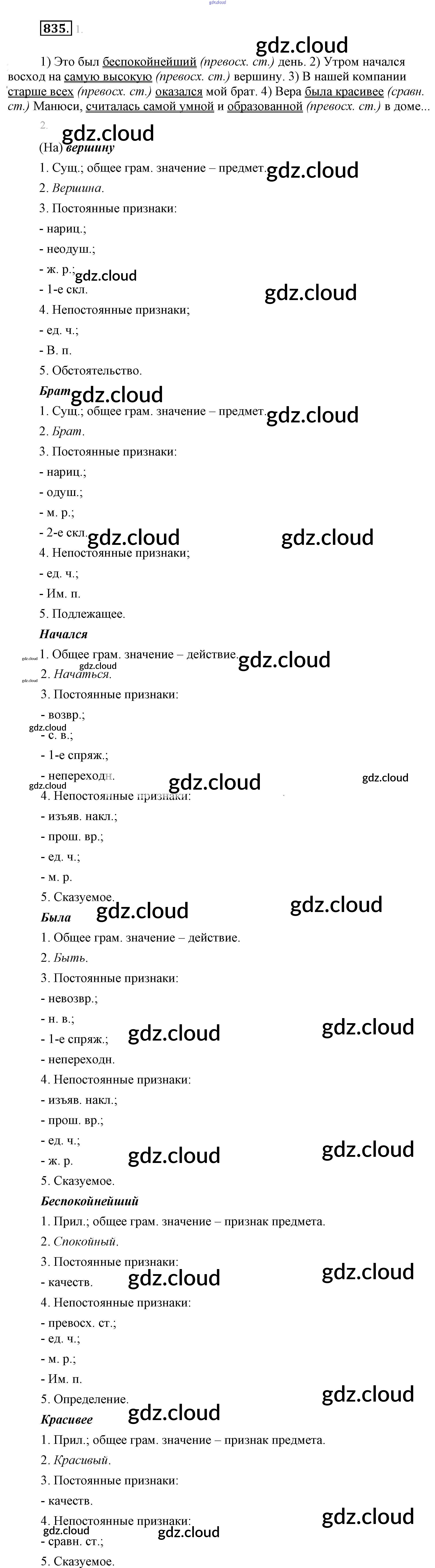 Ответ на задание 835 Учебник Русский язык за 5 (пятый) класс Разумовская, Львова, Капинос, Львов, Богданова, Тронина, Сергеева 2014
