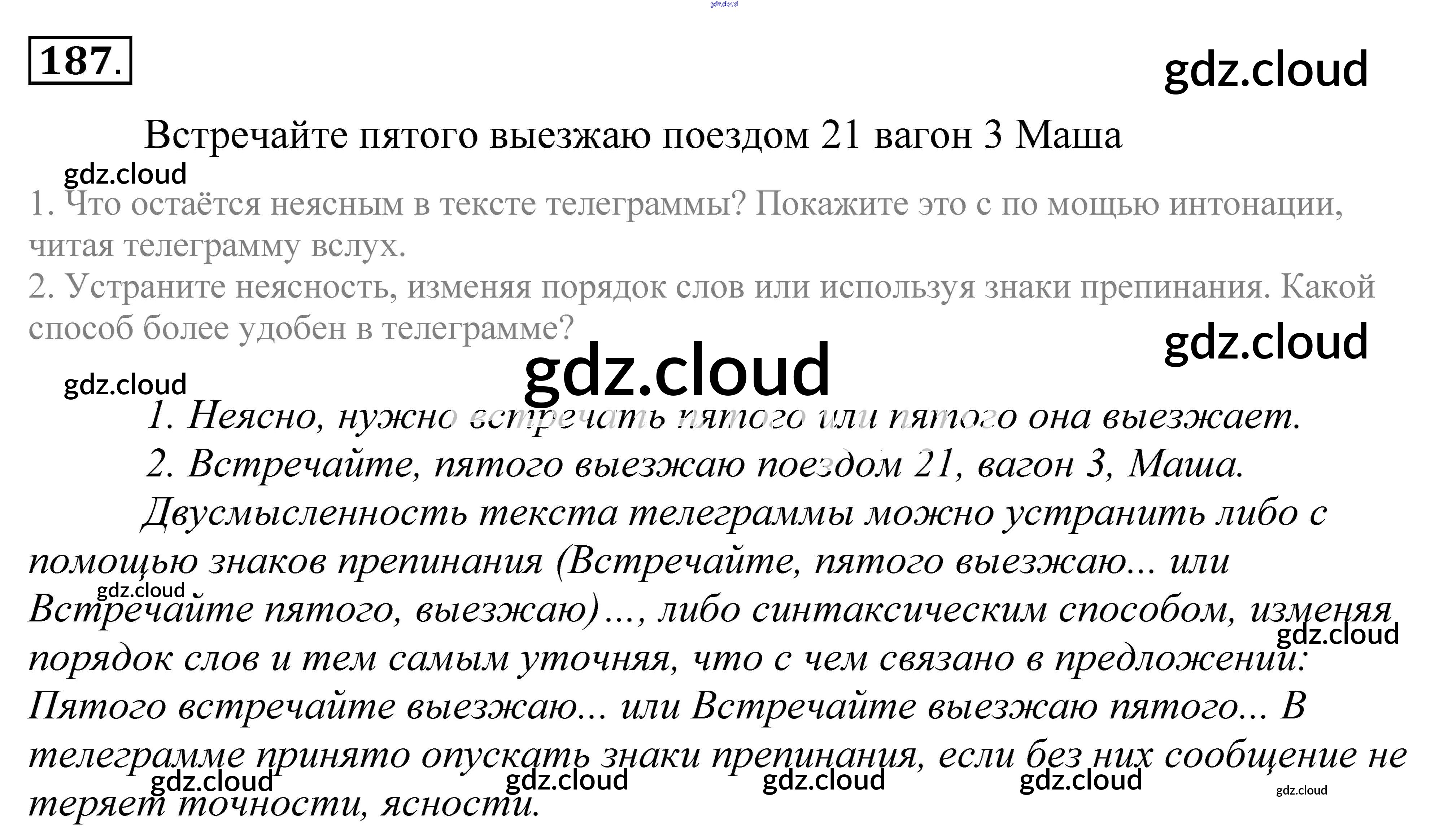 Ответ на задание 187 Учебник Русский язык за 5 (пятый) класс Купалова, Еремеева, Лидман-Орлова 2015 ФГОС онлайн и без номера телефона.