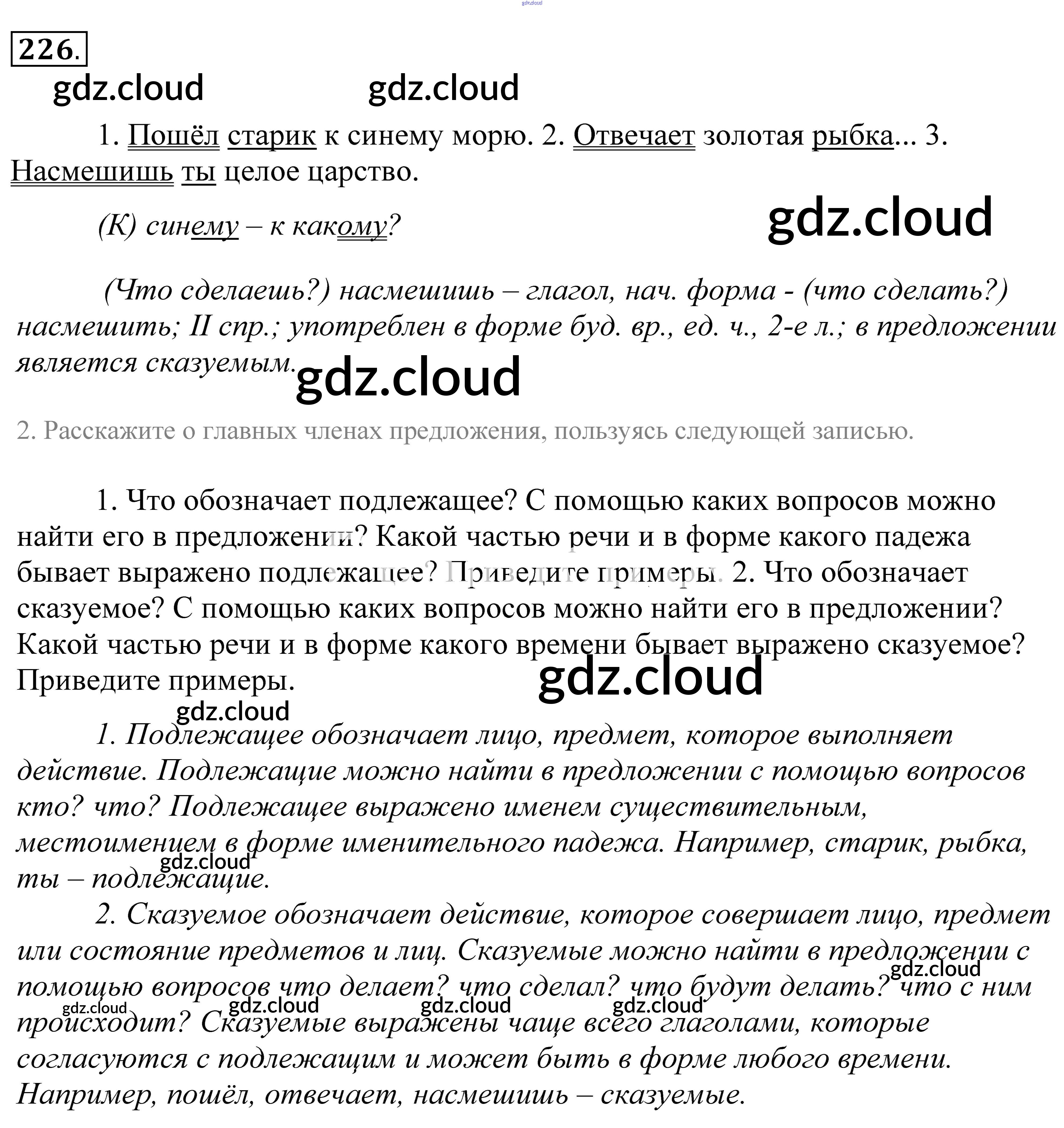 Ответ на задание 226 Учебник Русский язык за 5 (пятый) класс Купалова, Еремеева, Лидман-Орлова 2015 ФГОС онлайн и без номера телефона.