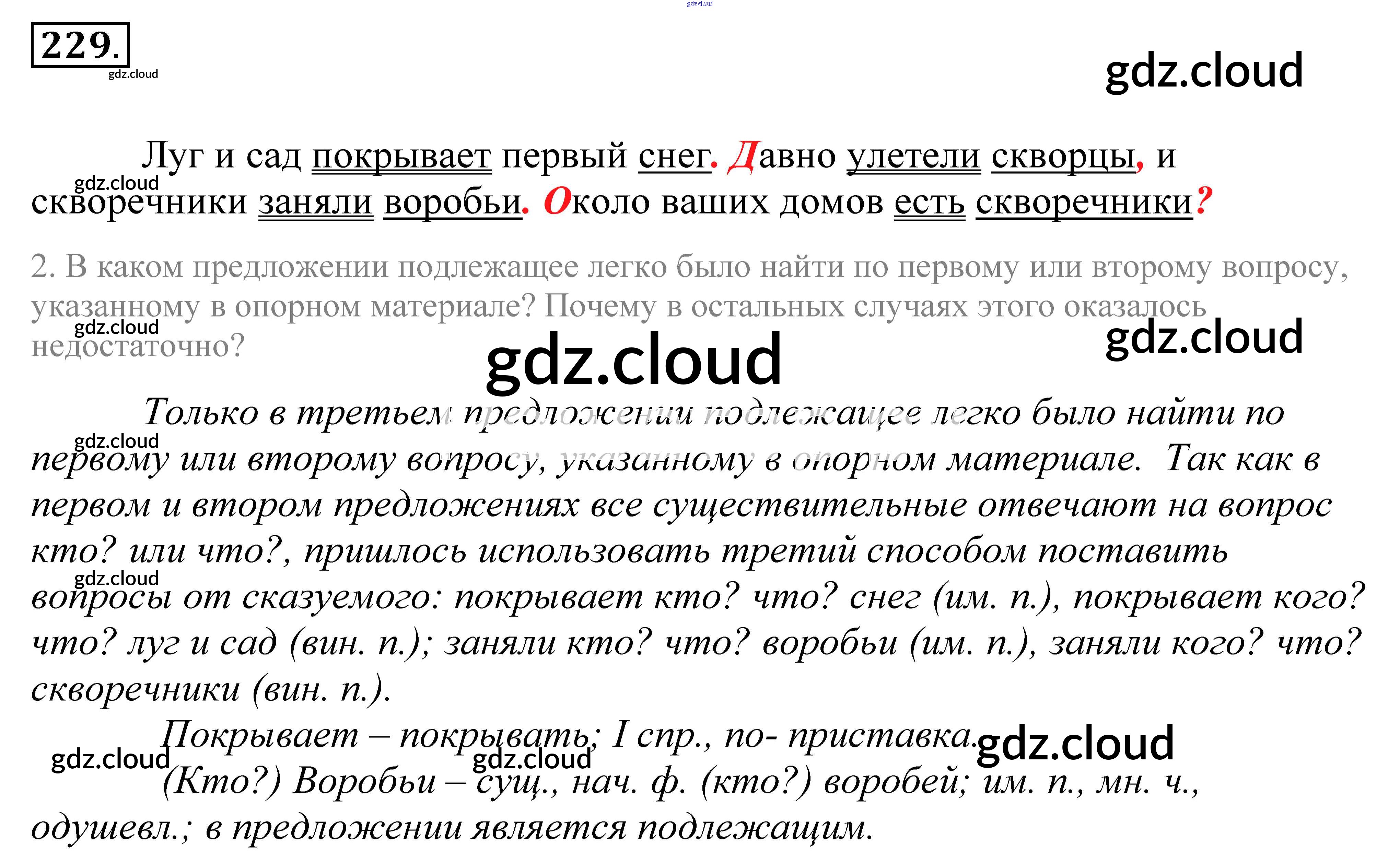 Ответ на задание 229 Учебник Русский язык за 5 (пятый) класс Купалова, Еремеева, Лидман-Орлова 2015 ФГОС онлайн и без номера телефона.