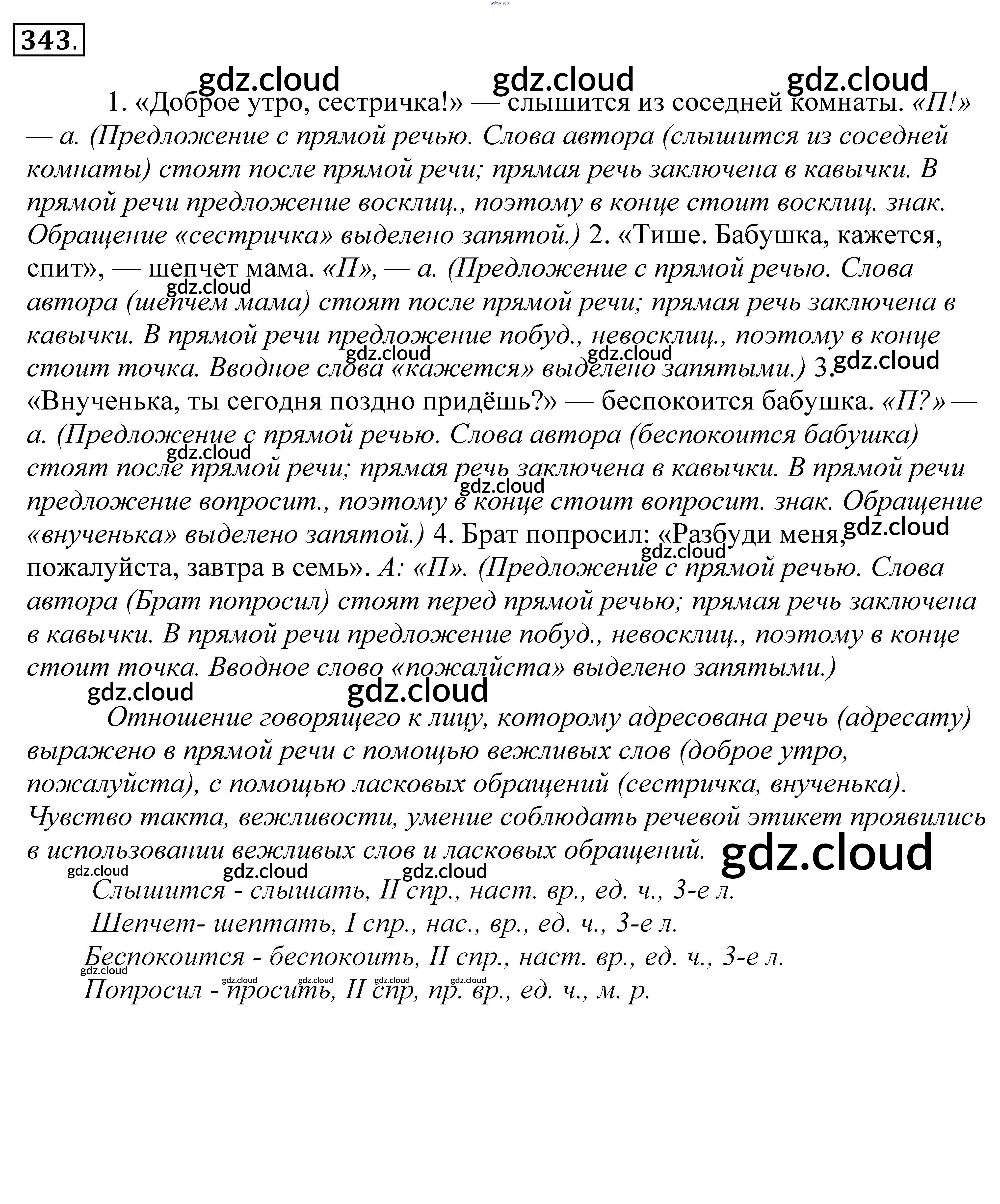 Ответ на задание 343 Учебник Русский язык за 5 (пятый) класс Купалова, Еремеева, Лидман-Орлова 2015 ФГОС онлайн и без номера телефона.
