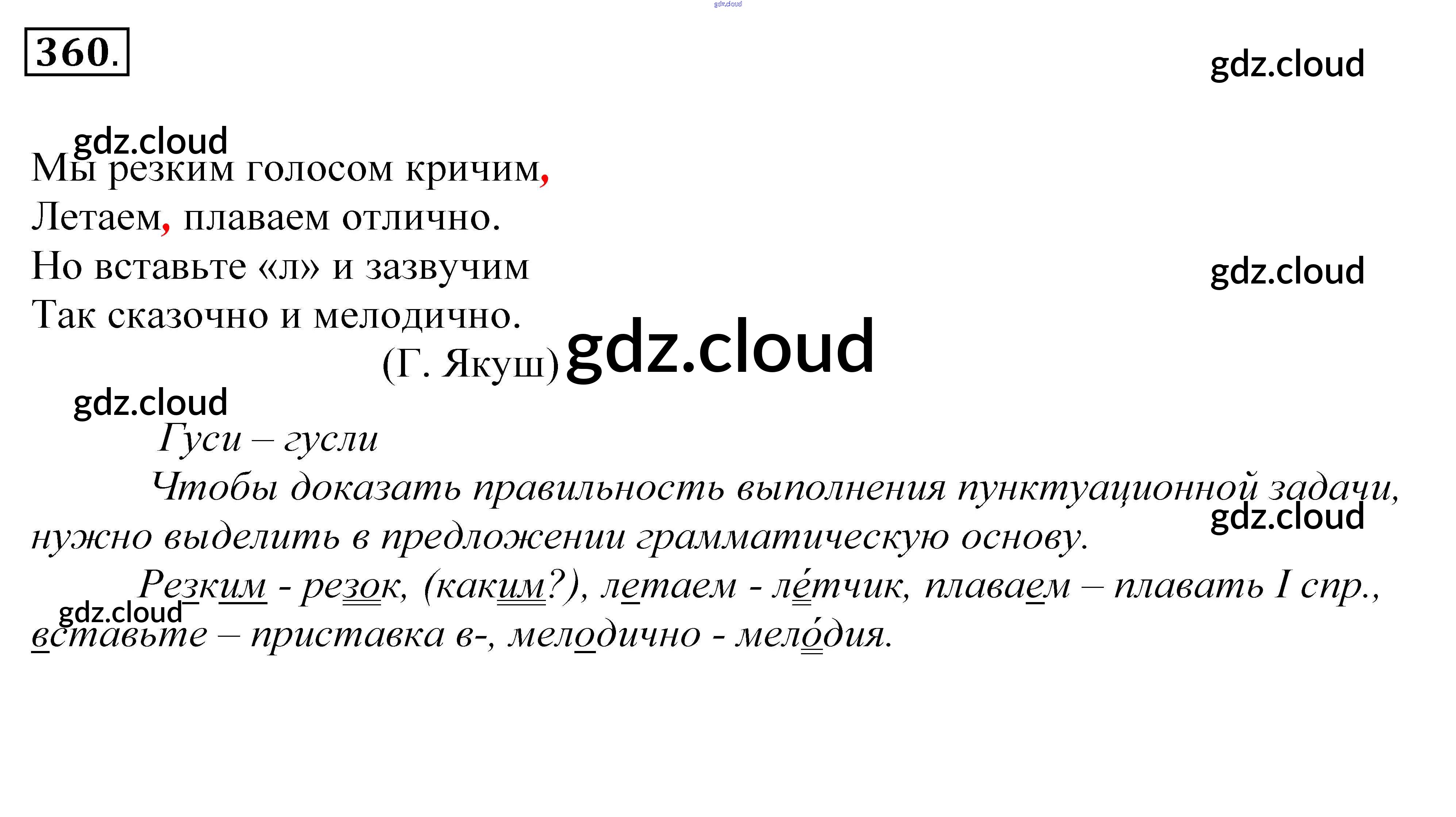 Ответ на задание 360 Учебник Русский язык за 5 (пятый) класс Купалова, Еремеева, Лидман-Орлова 2015 ФГОС онлайн и без номера телефона.