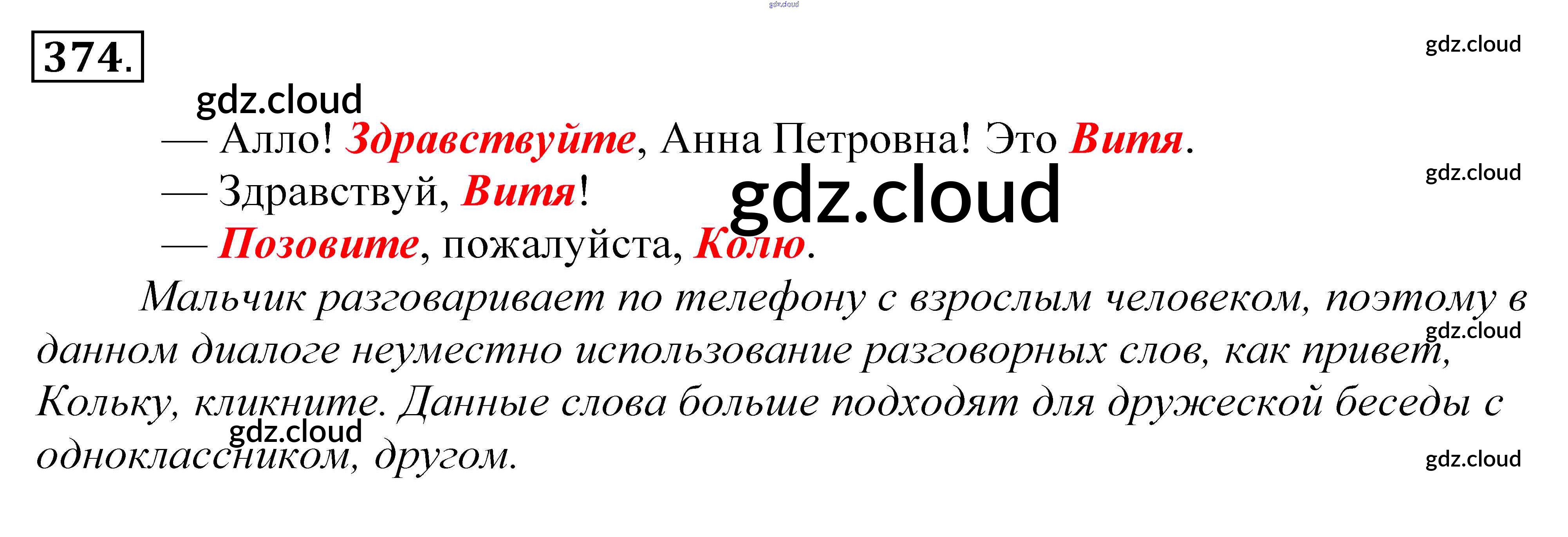 Ответ на задание 374 Учебник Русский язык за 5 (пятый) класс Купалова, Еремеева, Лидман-Орлова 2015 ФГОС онлайн и без номера телефона.