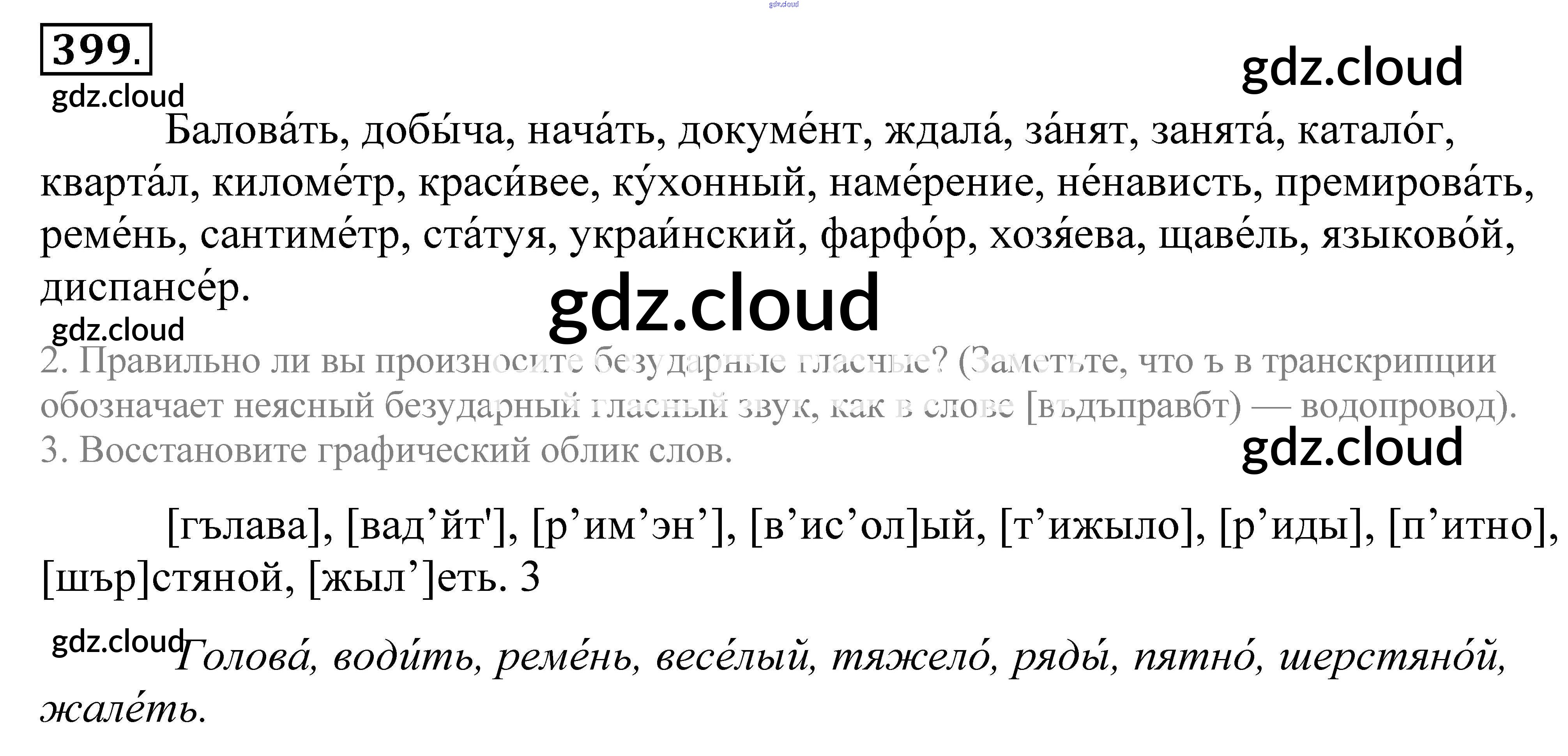 Ответ на задание 399 Учебник Русский язык за 5 (пятый) класс Купалова, Еремеева, Лидман-Орлова 2015 ФГОС онлайн и без номера телефона.