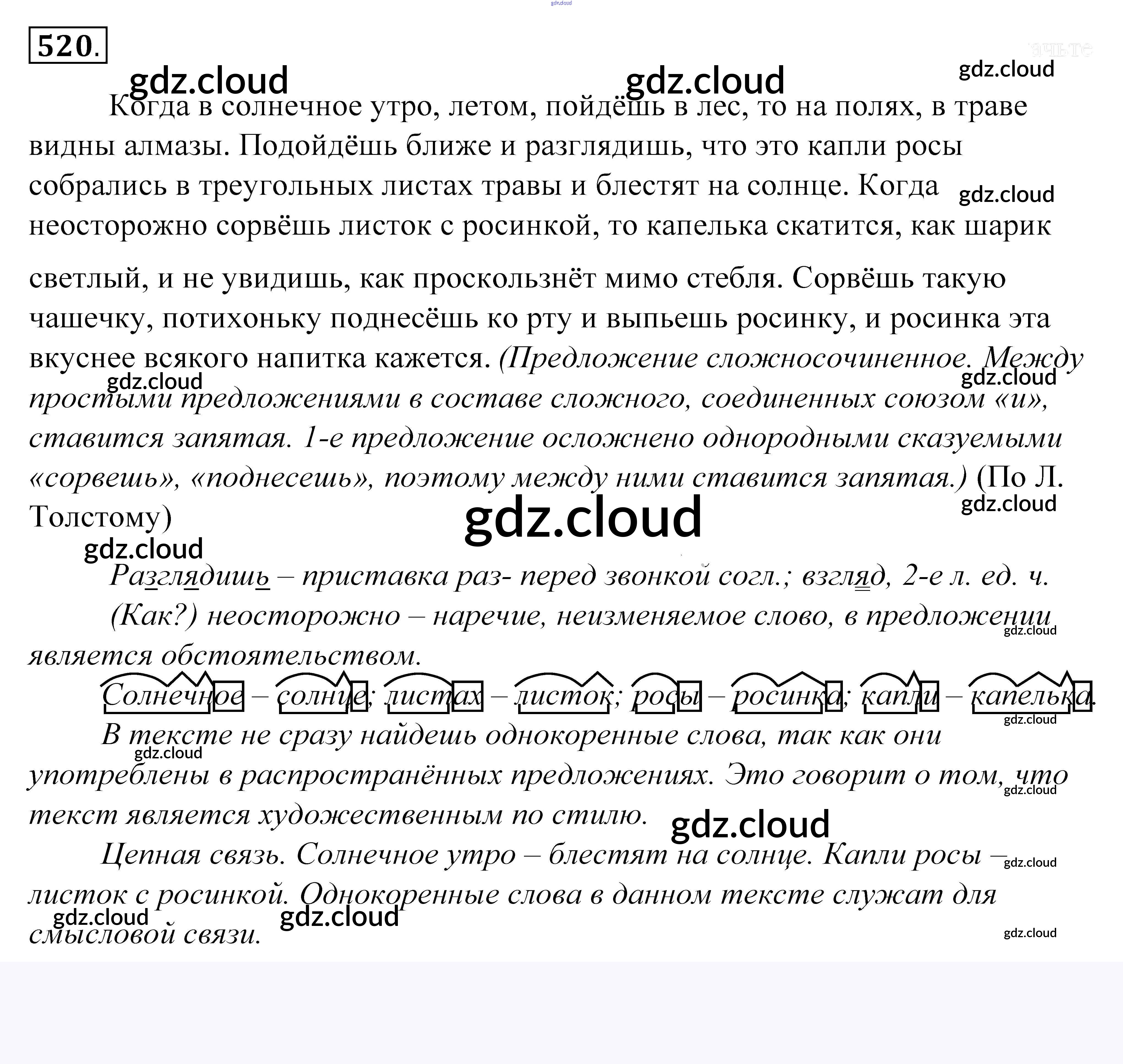 Ответ на задание 520 Учебник Русский язык за 5 (пятый) класс Купалова, Еремеева, Лидман-Орлова 2015 ФГОС онлайн и без номера телефона.
