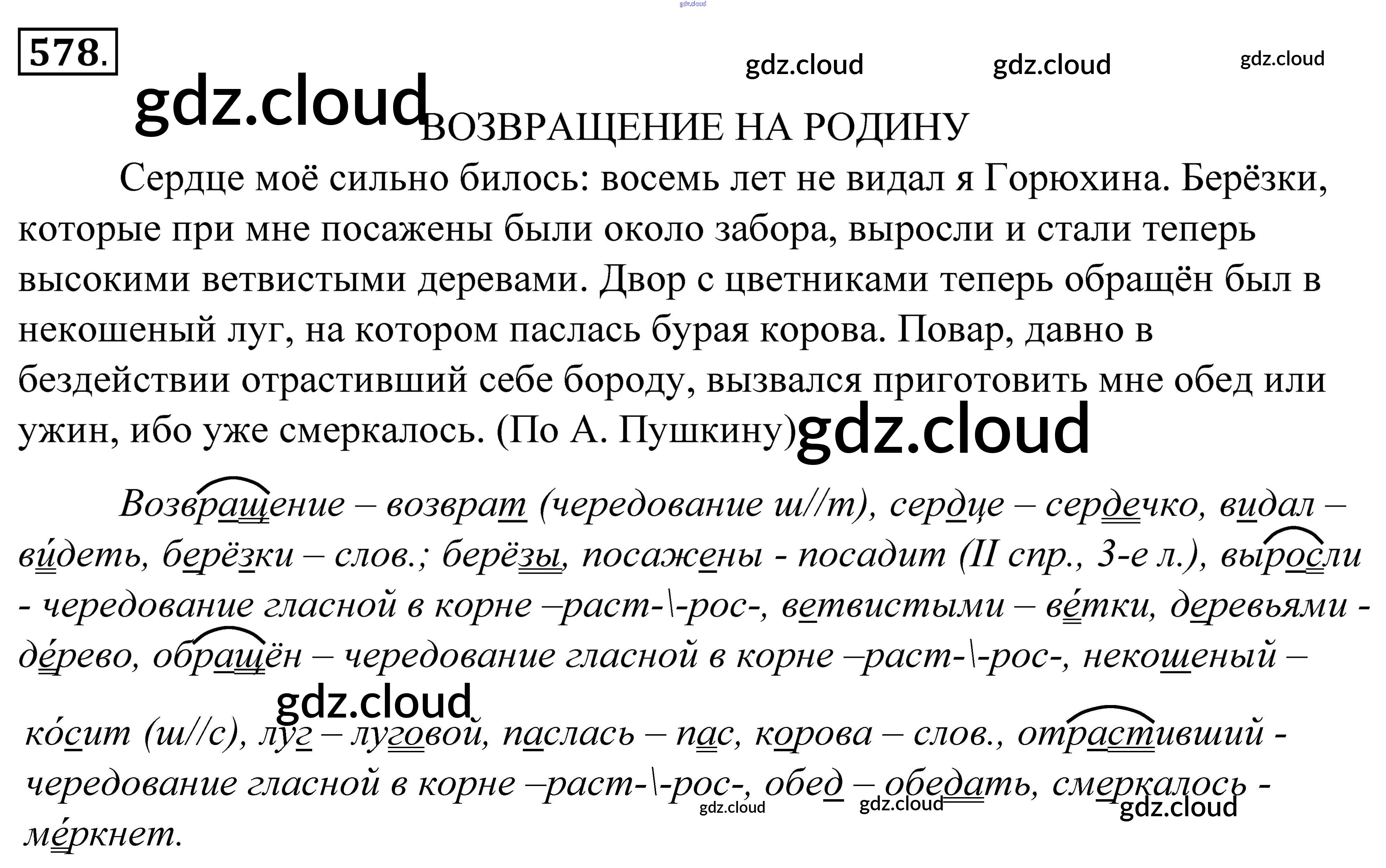 Ответ на задание 578 Учебник Русский язык за 5 (пятый) класс Купалова, Еремеева, Лидман-Орлова 2015 ФГОС онлайн и без номера телефона.