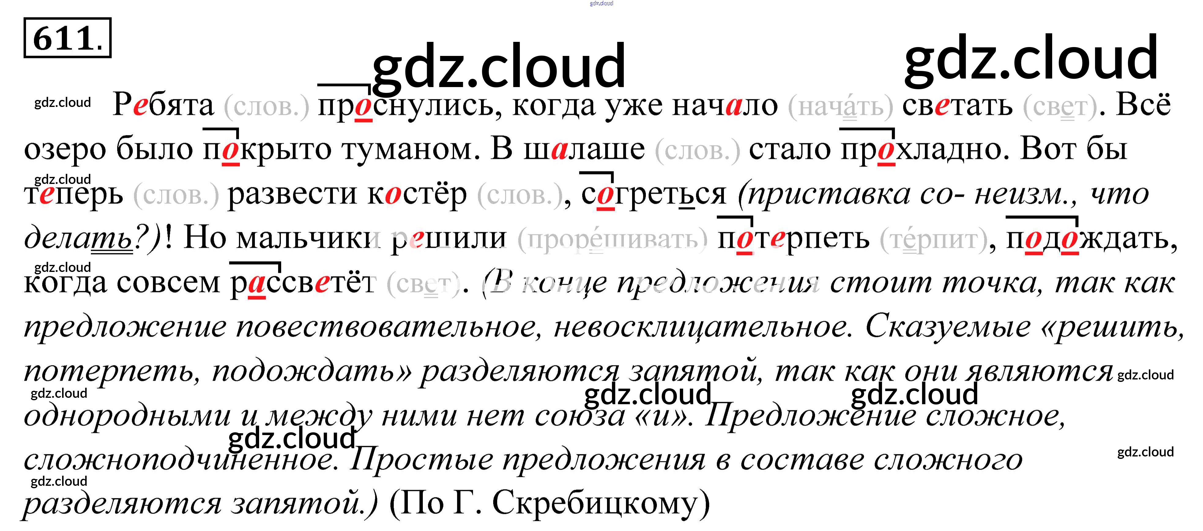 Ответ на задание 611 Учебник Русский язык за 5 (пятый) класс Купалова, Еремеева, Лидман-Орлова 2015 ФГОС онлайн и без номера телефона.