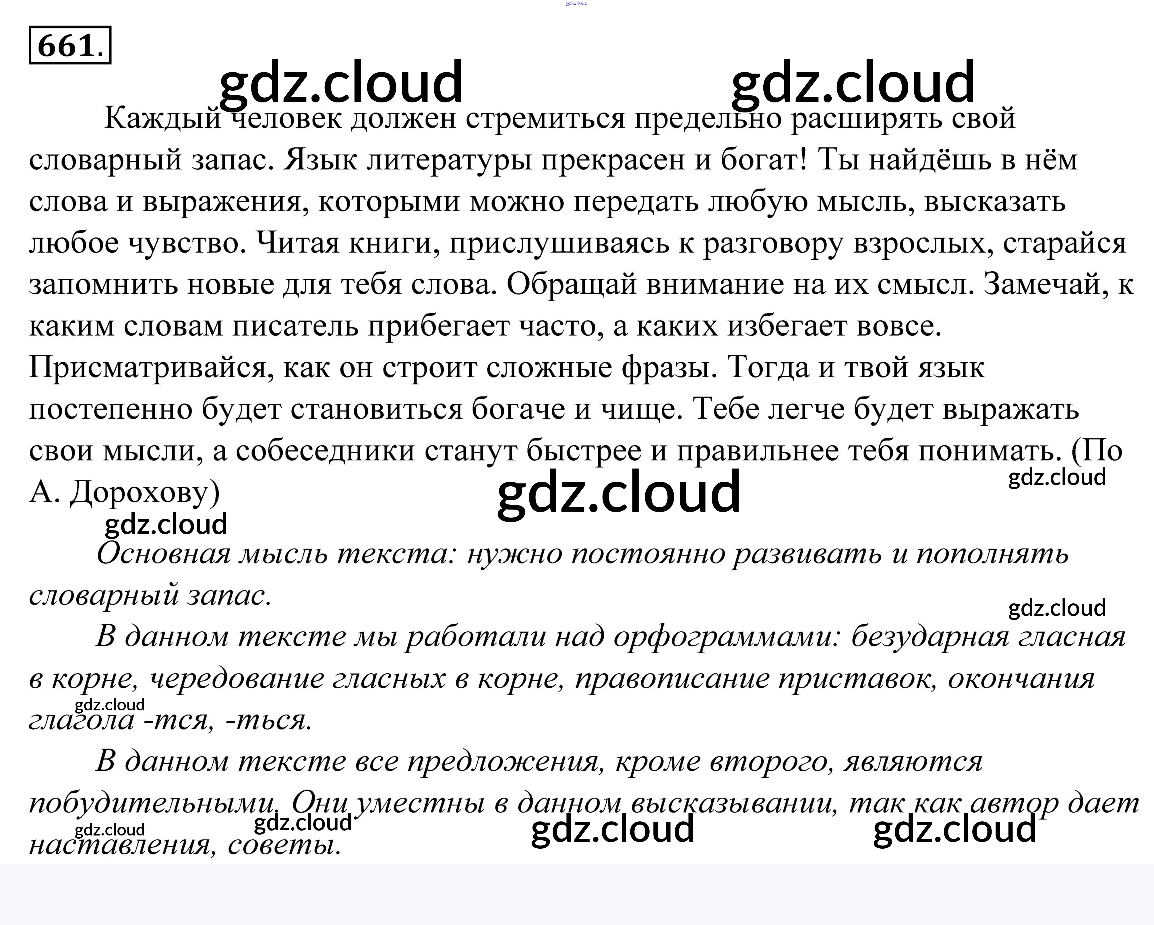 Ответ на задание 661 Учебник Русский язык за 5 (пятый) класс Купалова, Еремеева, Лидман-Орлова 2015 ФГОС онлайн и без номера телефона.