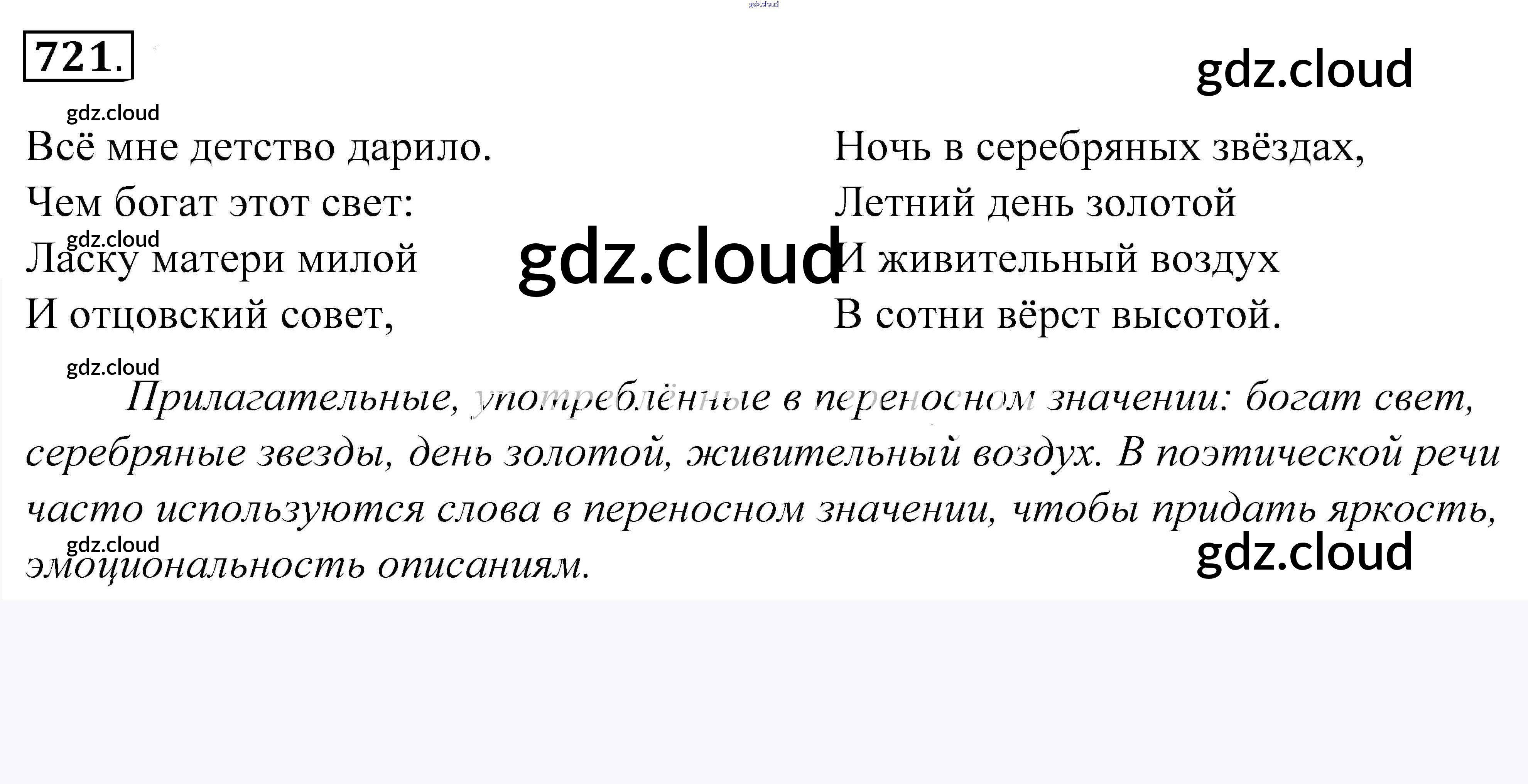 Ответ на задание 721 Учебник Русский язык за 5 (пятый) класс Купалова, Еремеева, Лидман-Орлова 2015 ФГОС онлайн и без номера телефона.