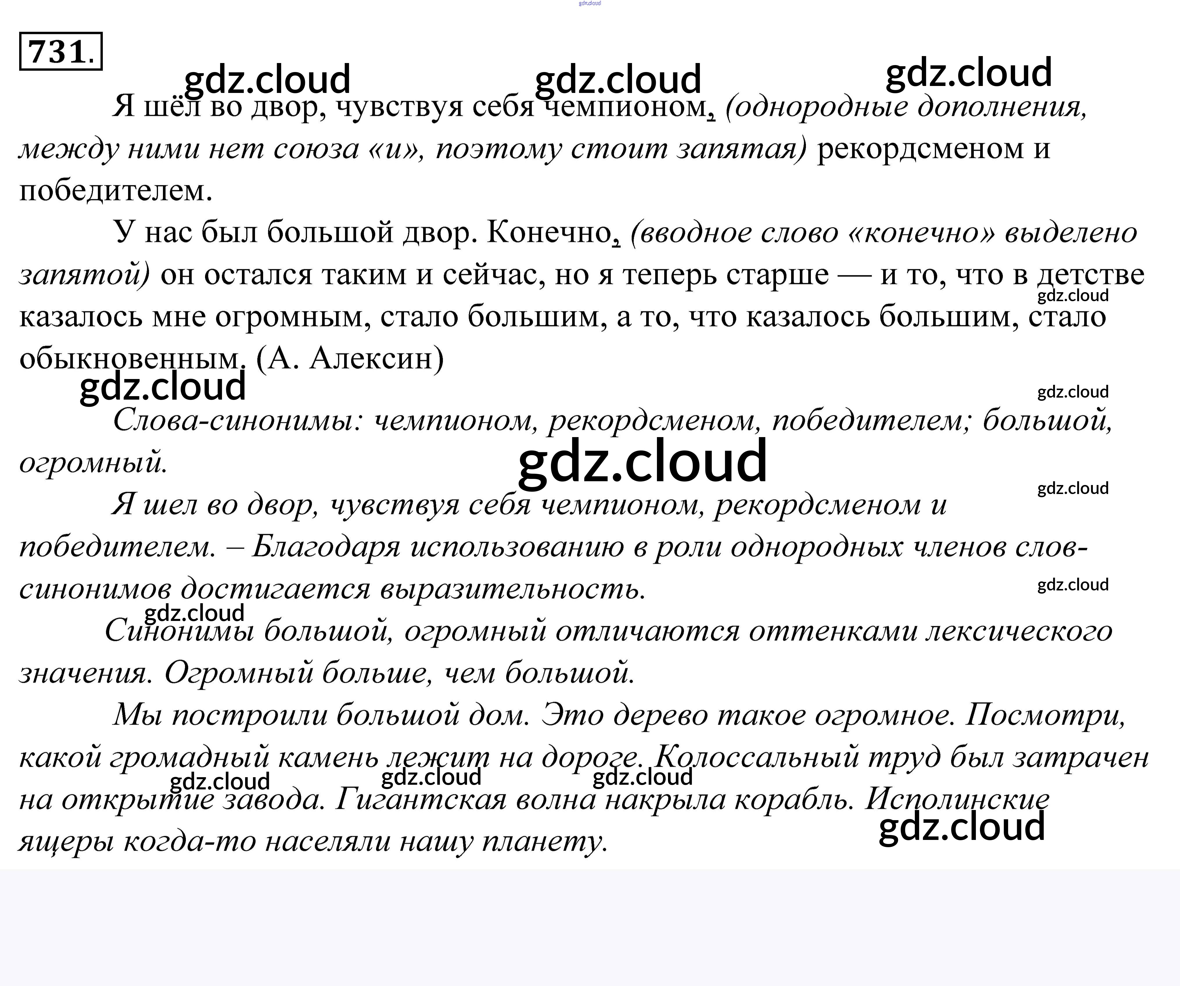 Ответ на задание 731 Учебник Русский язык за 5 (пятый) класс Купалова, Еремеева, Лидман-Орлова 2015 ФГОС онлайн и без номера телефона.