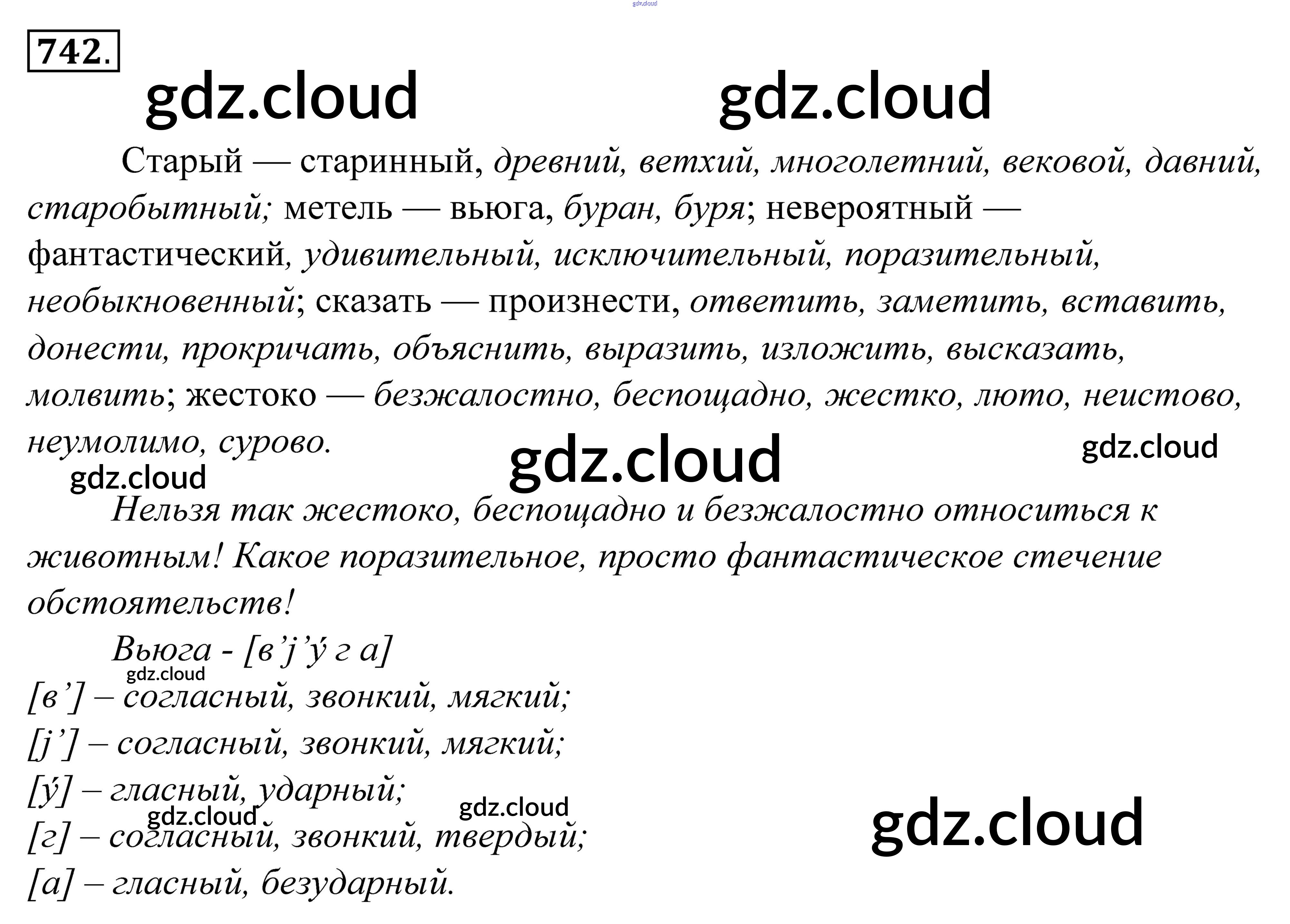 Ответ на задание 742 Учебник Русский язык за 5 (пятый) класс Купалова, Еремеева, Лидман-Орлова 2015 ФГОС онлайн и без номера телефона.