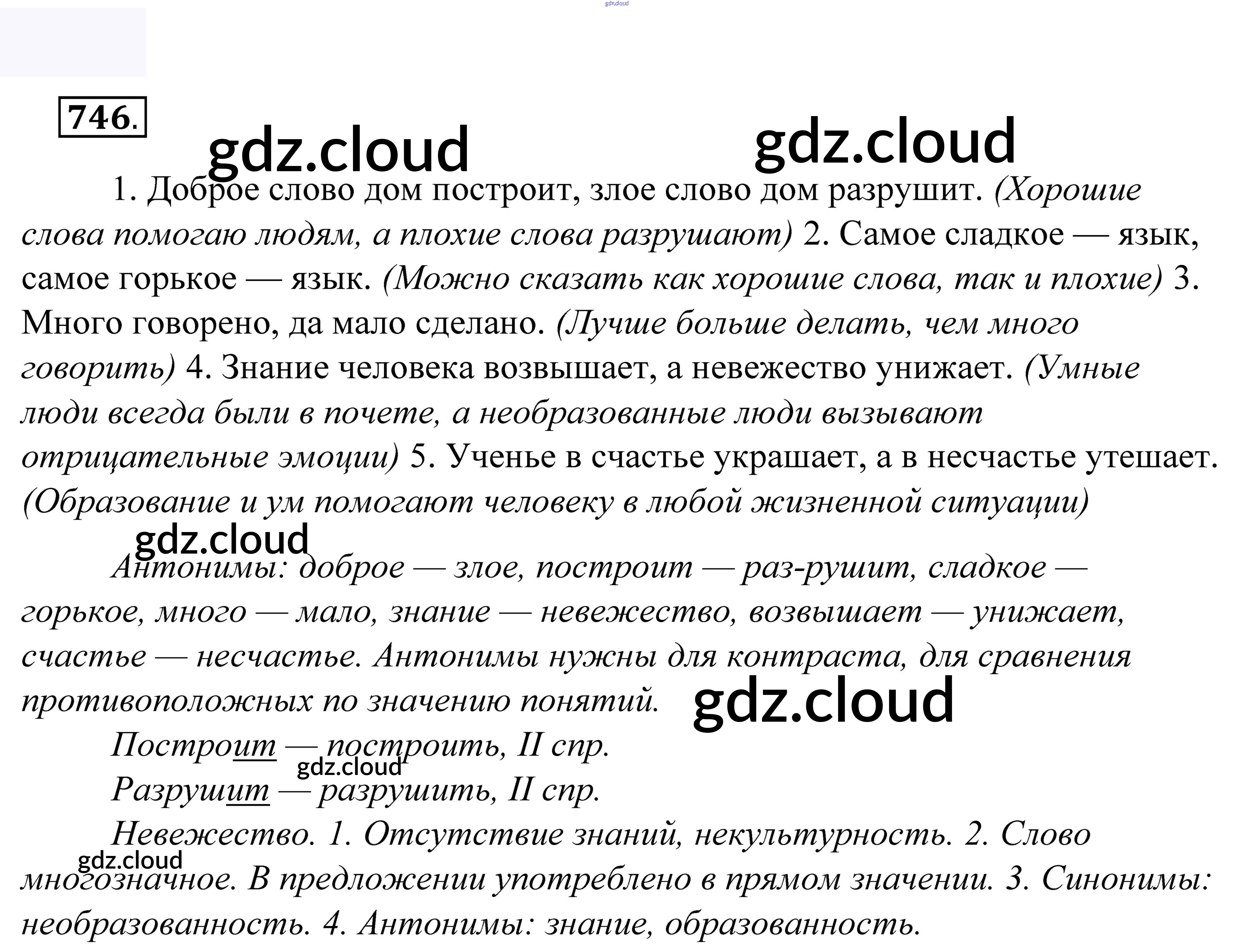 Ответ на задание 746 Учебник Русский язык за 5 (пятый) класс Купалова, Еремеева, Лидман-Орлова 2015 ФГОС онлайн и без номера телефона.